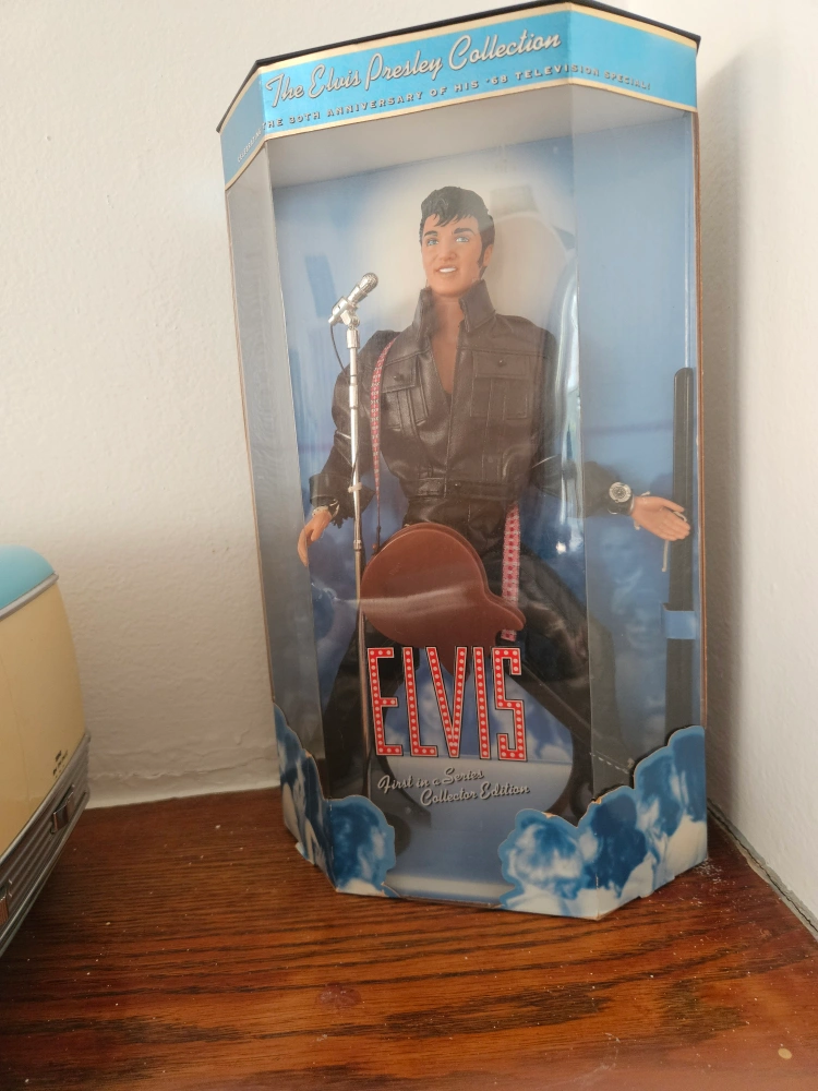 I'm selling an Elvis Presley "First in a Series Collector Edition" doll. It's still in its original packaging Only available for pickup only. Cash only accepted.