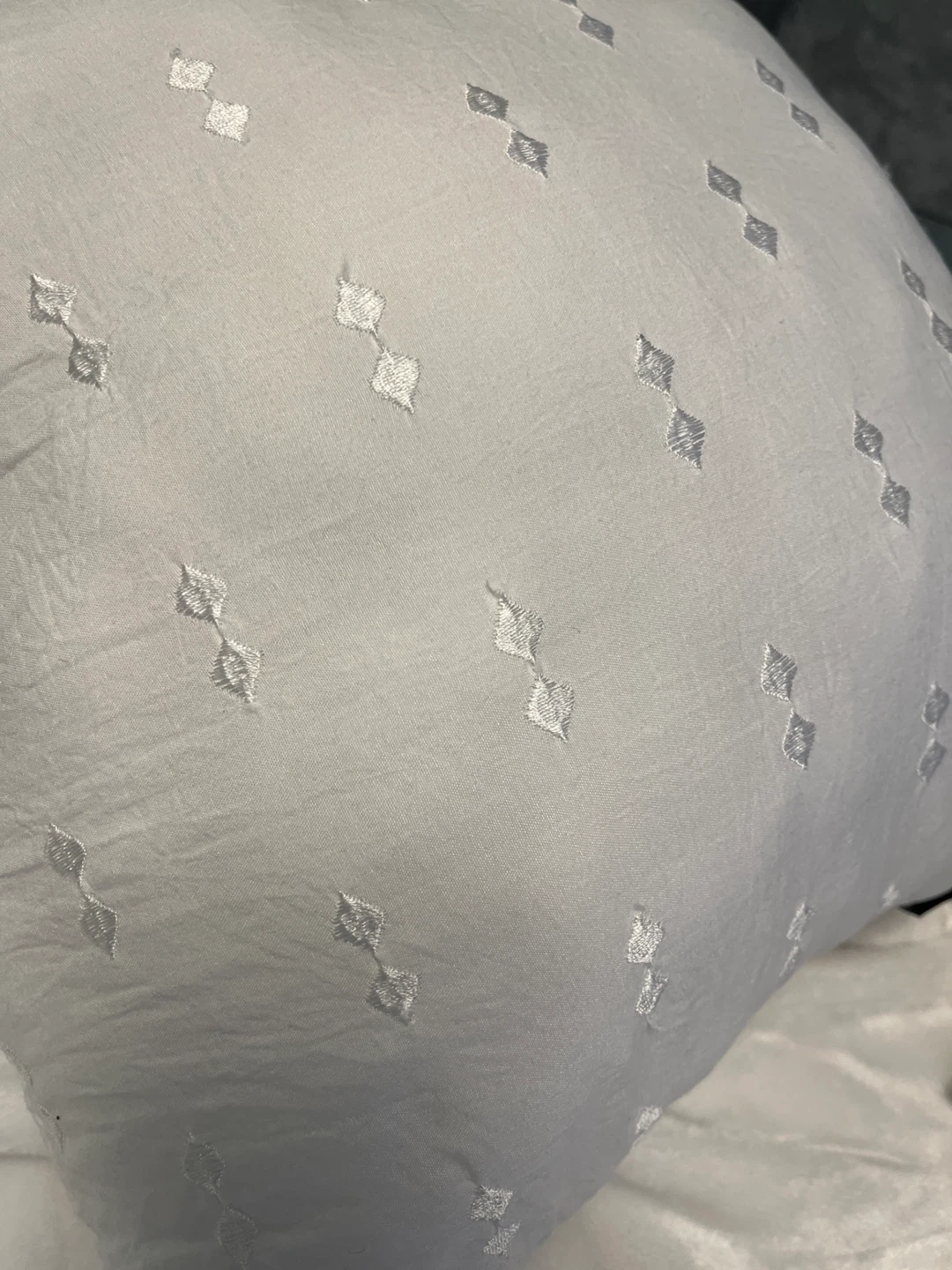 2. 18” x 18” white embroidered throw pillow