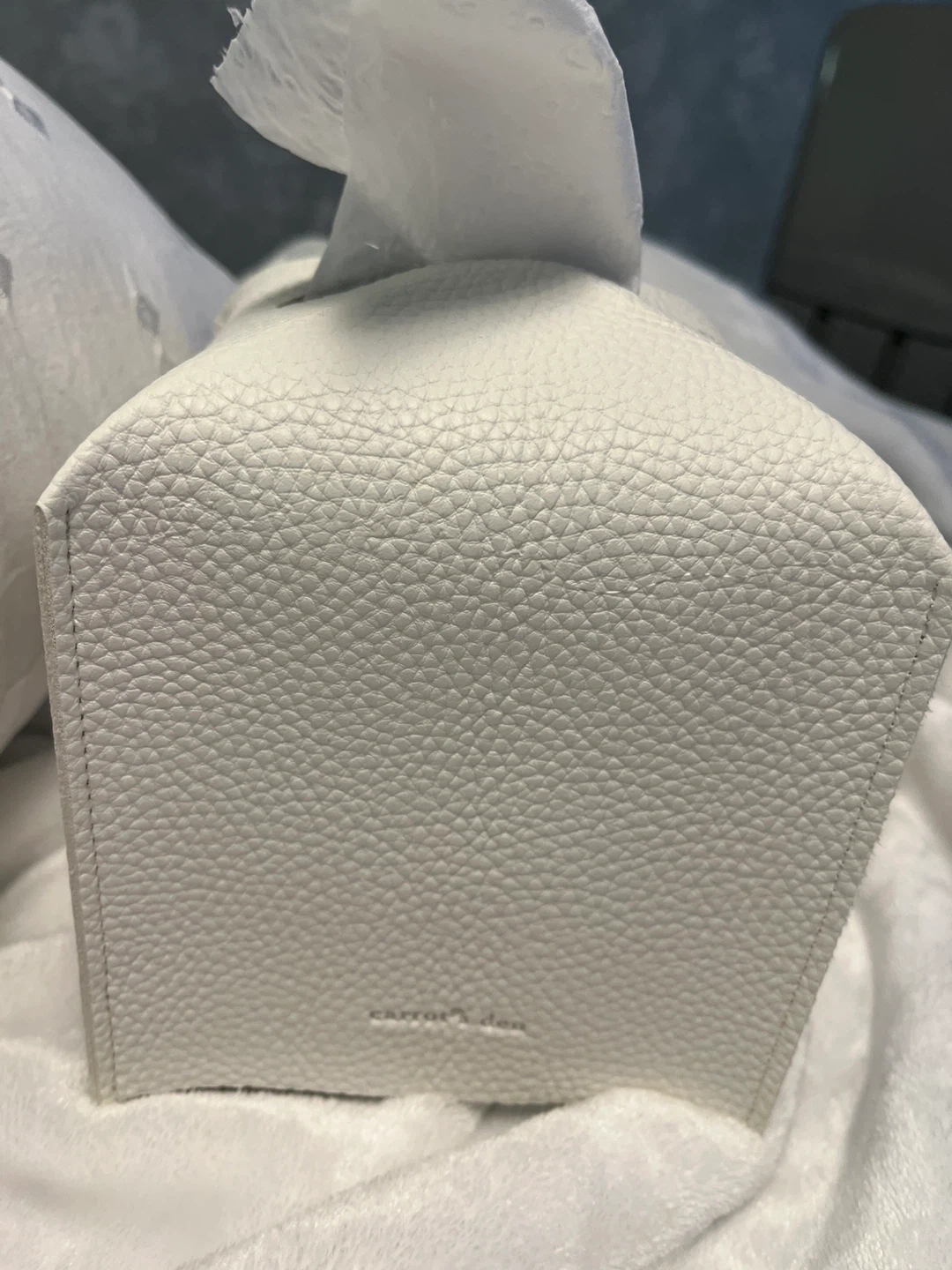3. White Kleenex box made of faux leather