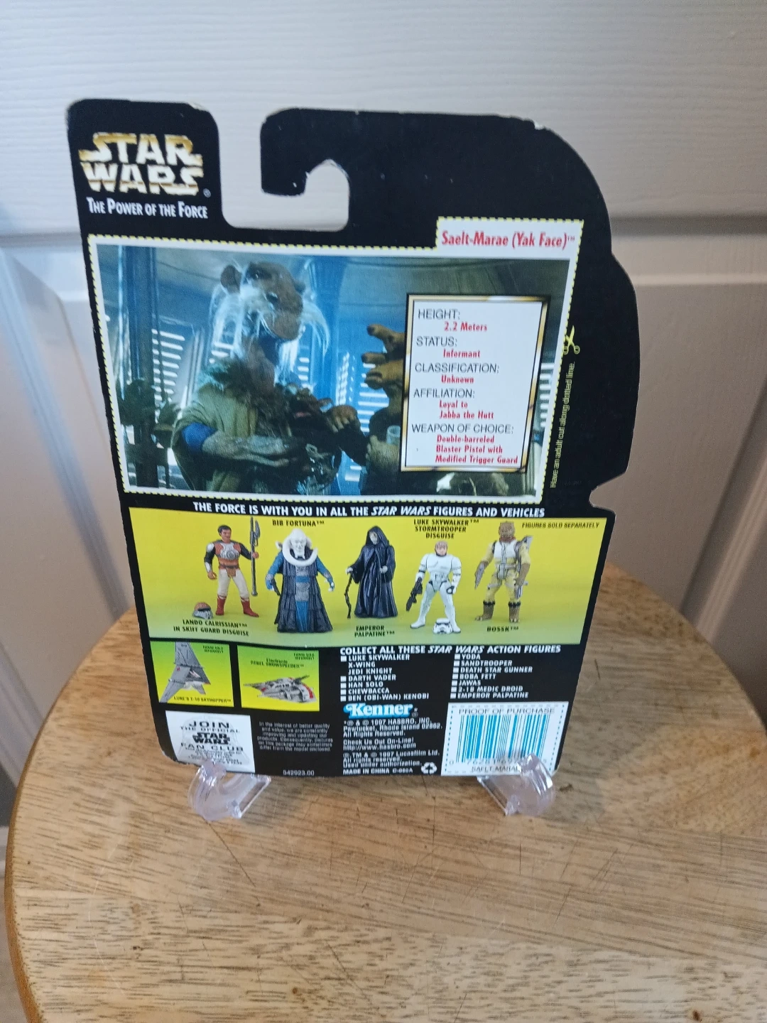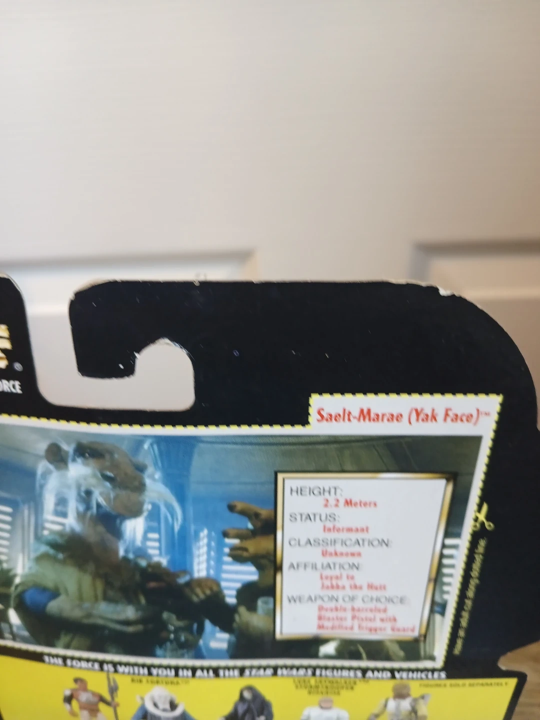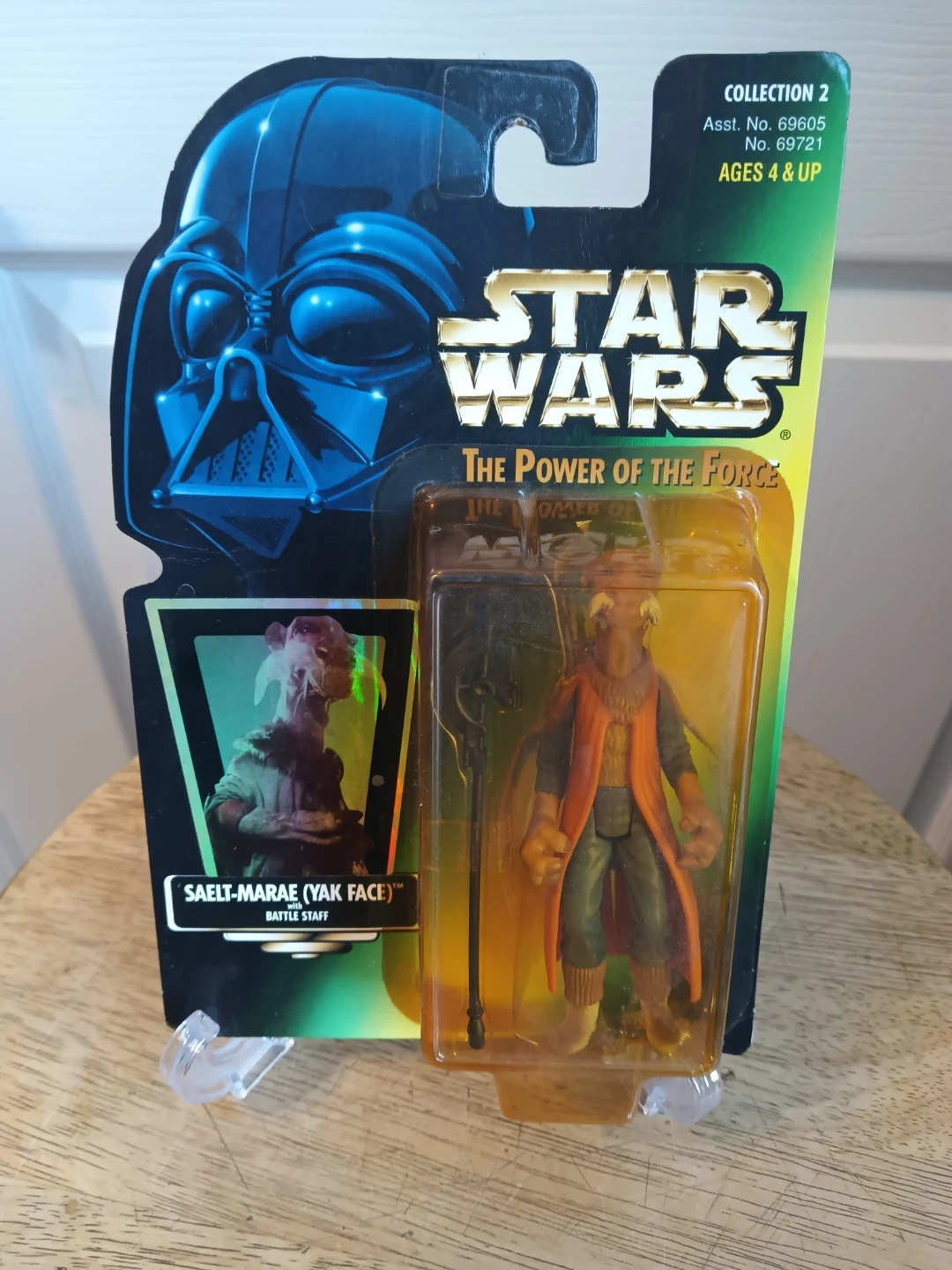 Selling a Star Wars Saelt-Marae (Yak Face) action figure from The Power of the Force line. This figure comes with a Battle Staff. It's part of Collection 2 and is suitable for ages 4 and up. Packaging has some wear,dings and bends. See pictures. Sold as is.