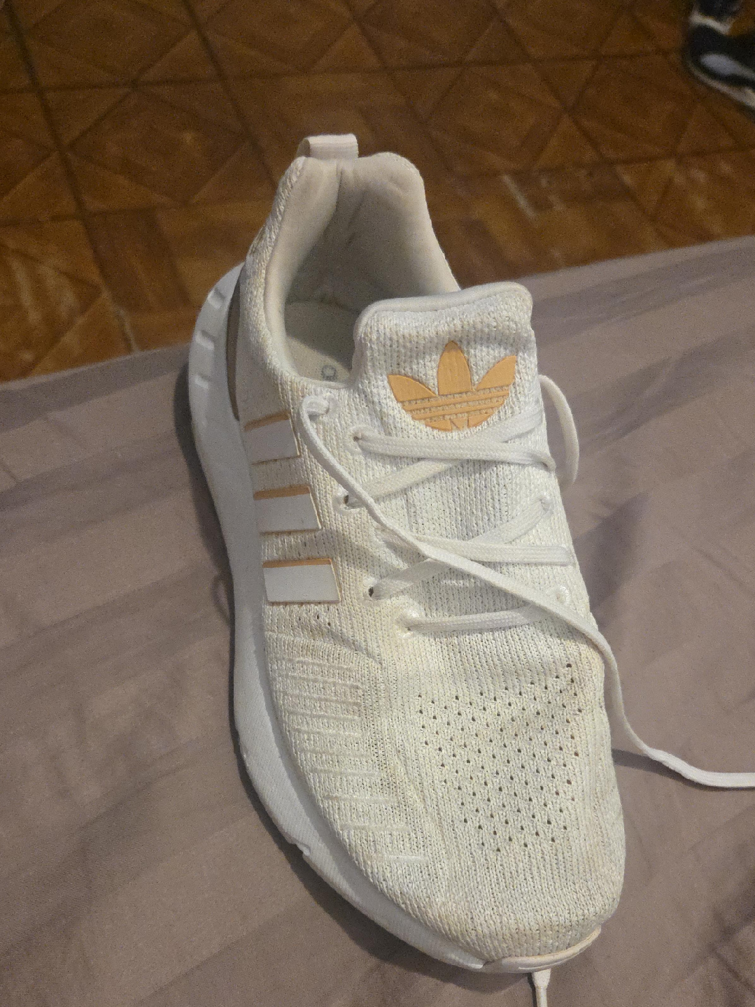60Selling a pair of Adidas Swift Run 22 sneakers in white. They show some signs of wear, as seen in the photos. Still have lots of life left!