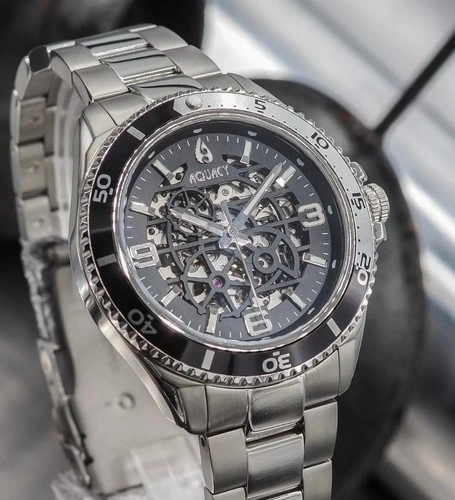 Aquacy Skeleton Automatic Miyota Men's Watch 200M Black