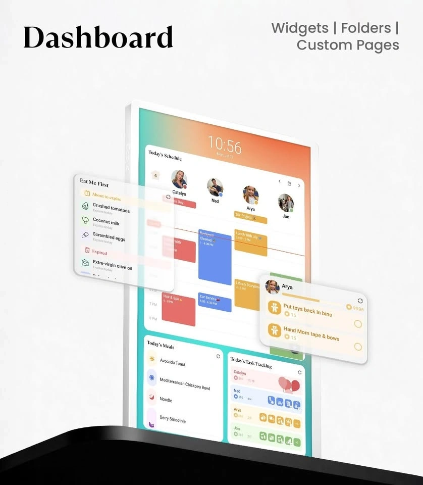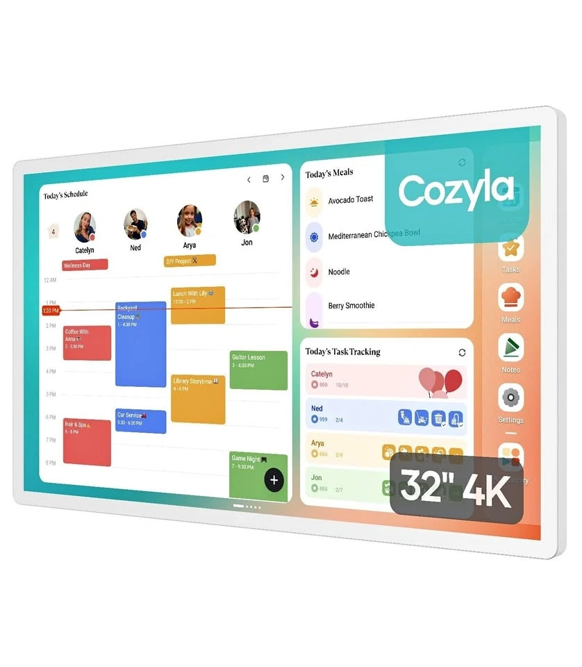 Awesome Cozylla 32" 4K UHD smart display. This device helps keep your family organized. It has a shared family calendar with auto syncing and color coding. Also has task tracking, meal planning, and a customizable dashboard with widgets. Great for seeing daily plans clearly!