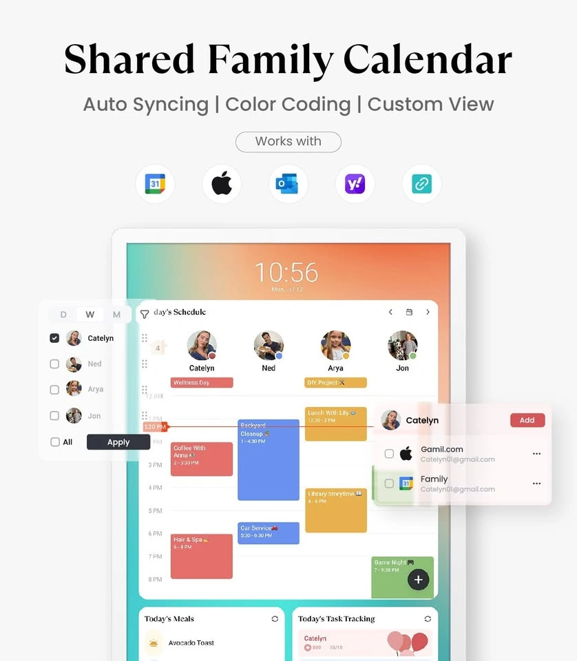 Awesome Cozylla 32" 4K UHD smart display. This device helps keep your family organized. It has a shared family calendar with auto syncing and color coding. Also has task tracking, meal planning, and a customizable dashboard with widgets. Great for seeing daily plans clearly!
