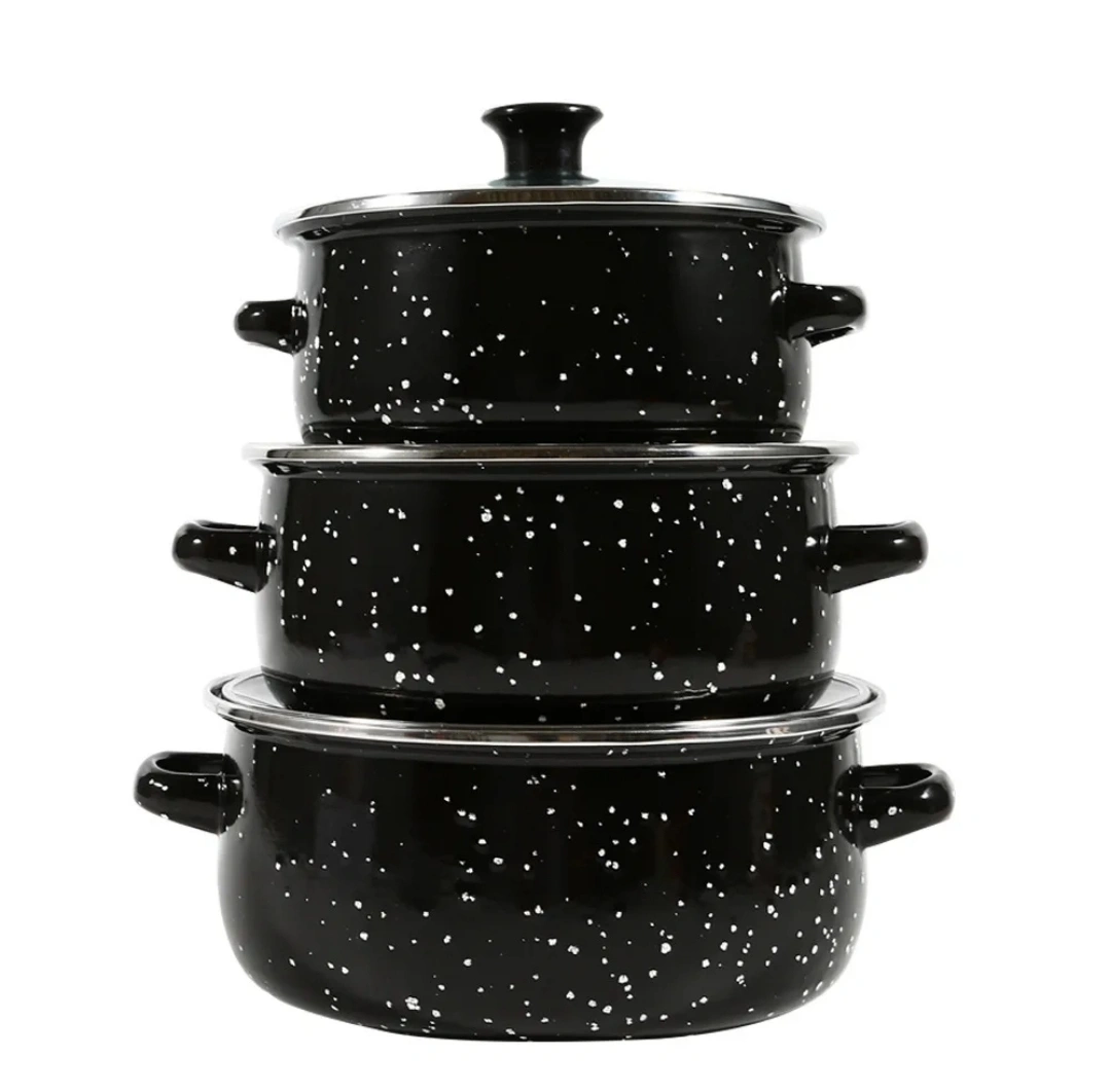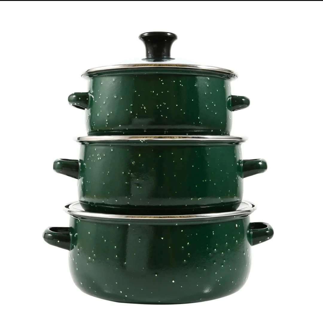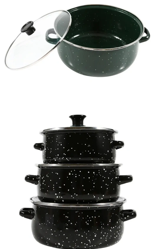 Get your kitchen cooking with this enamel stock pot set! It comes in both black and green, perfect for matching any kitchen decor. These pots are durable and ready for your next culinary adventure