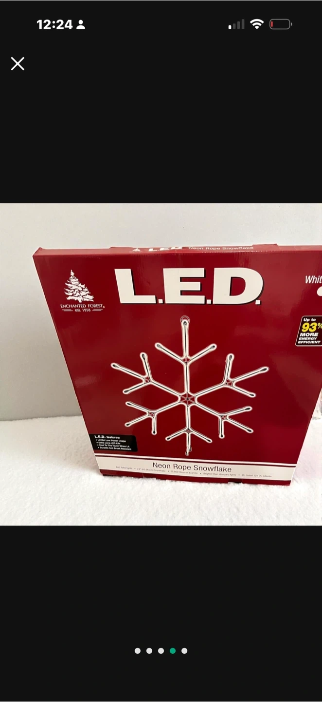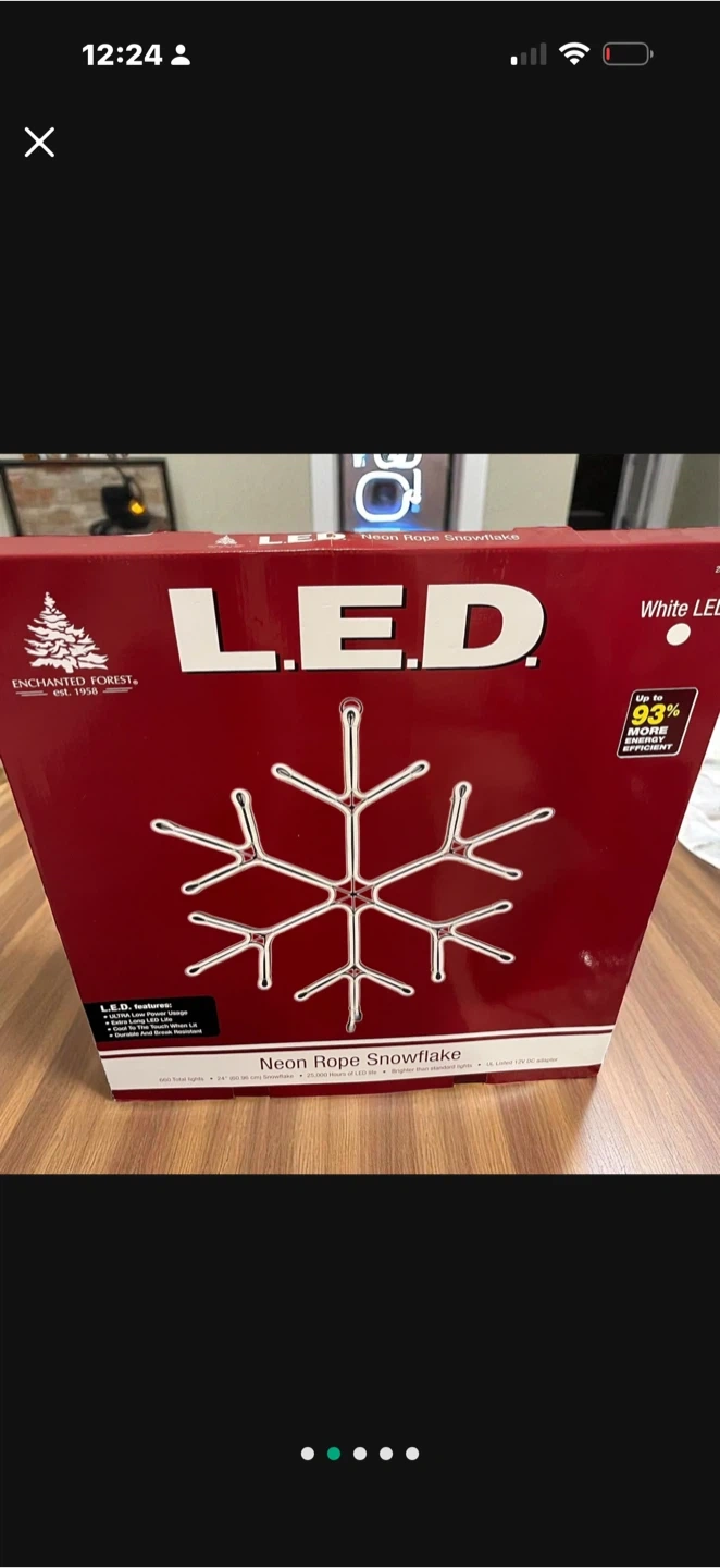 60Selling a brand new, in-box Enchanted Forest LED Neon Rope Snowflake! This is perfect for adding a festive touch to your home. It features white LEDs and is designed for energy savings. Get ready to light up the winter season!