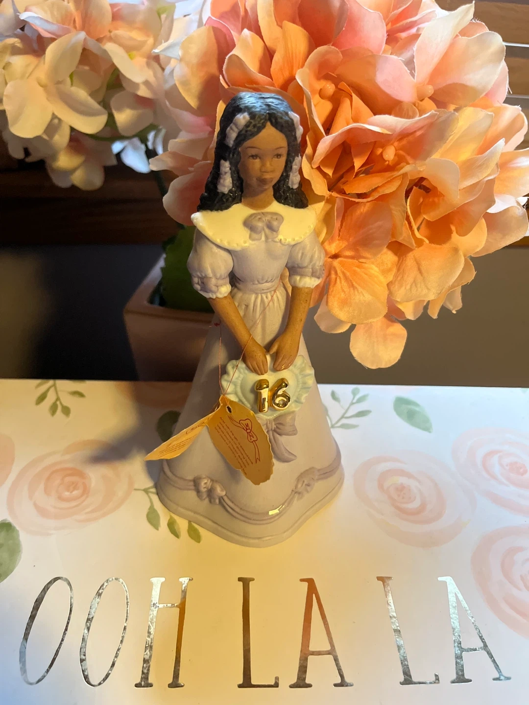 Selling a sweet Enesco "Growing Up Birthday Girls" figurine, representing age 16. This figurine is made in Sri Lanka and would be a lovely gift or addition to a collection