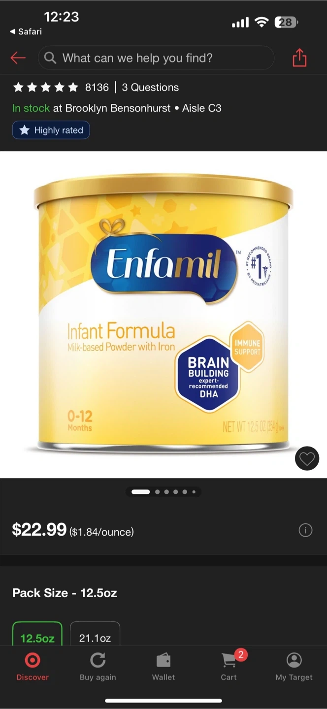 60Selling a can of Enfamil Infant Formula, milk-based powder with iron. It's a 12.5 oz can, perfect for babies 0-12 months. It supports brain building with expert-recommended DHA and immune support. Originally bought for $22.99