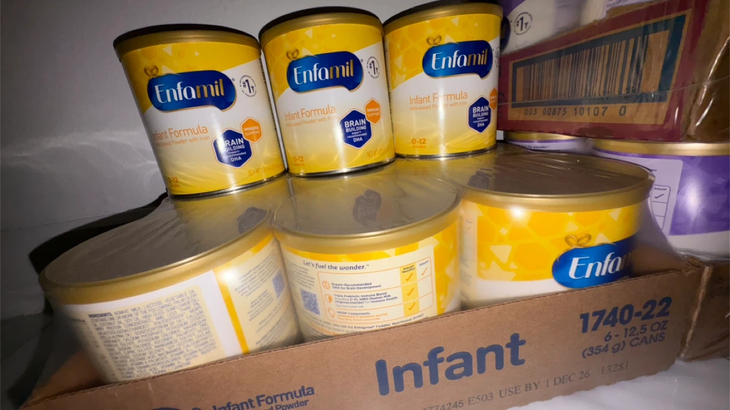 Enfamil Infant Formula! Each can contains 12.5 oz (354g) of milk-based powder with iron. This formula is designed for babies aged 0-12 months and supports brain building with DHA. The expiration date is 2026 December 01. $20 for each can.