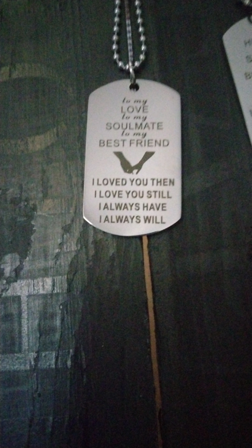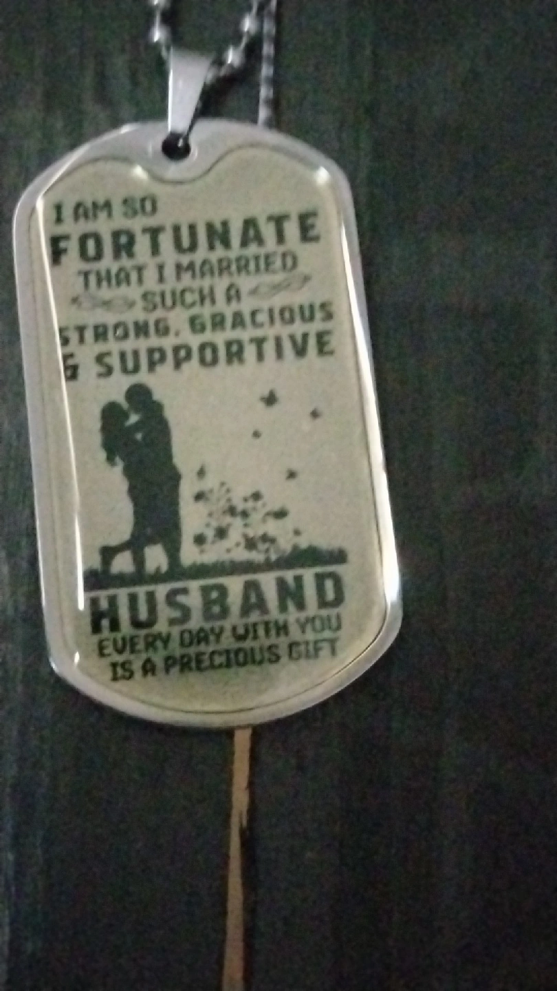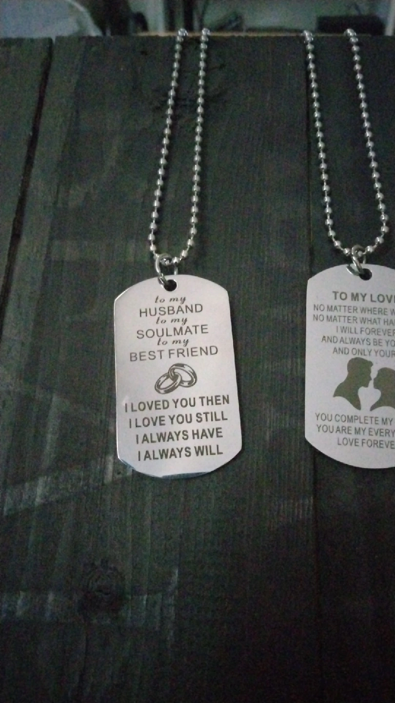 These are engraved dog tag necklaces. One says "To my husband, to my soulmate, to my best friend. I loved you then, I love you still, I always have, I always will". The other says "I am so fortunate that I married such a strong, gracious, and supportive husband. Every day with you is a precious gift"....price is for each