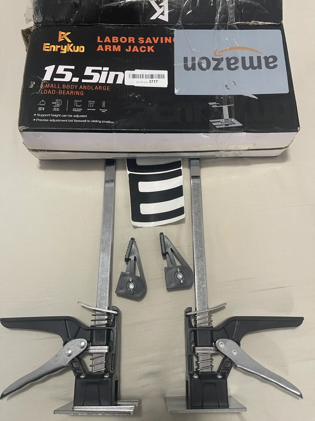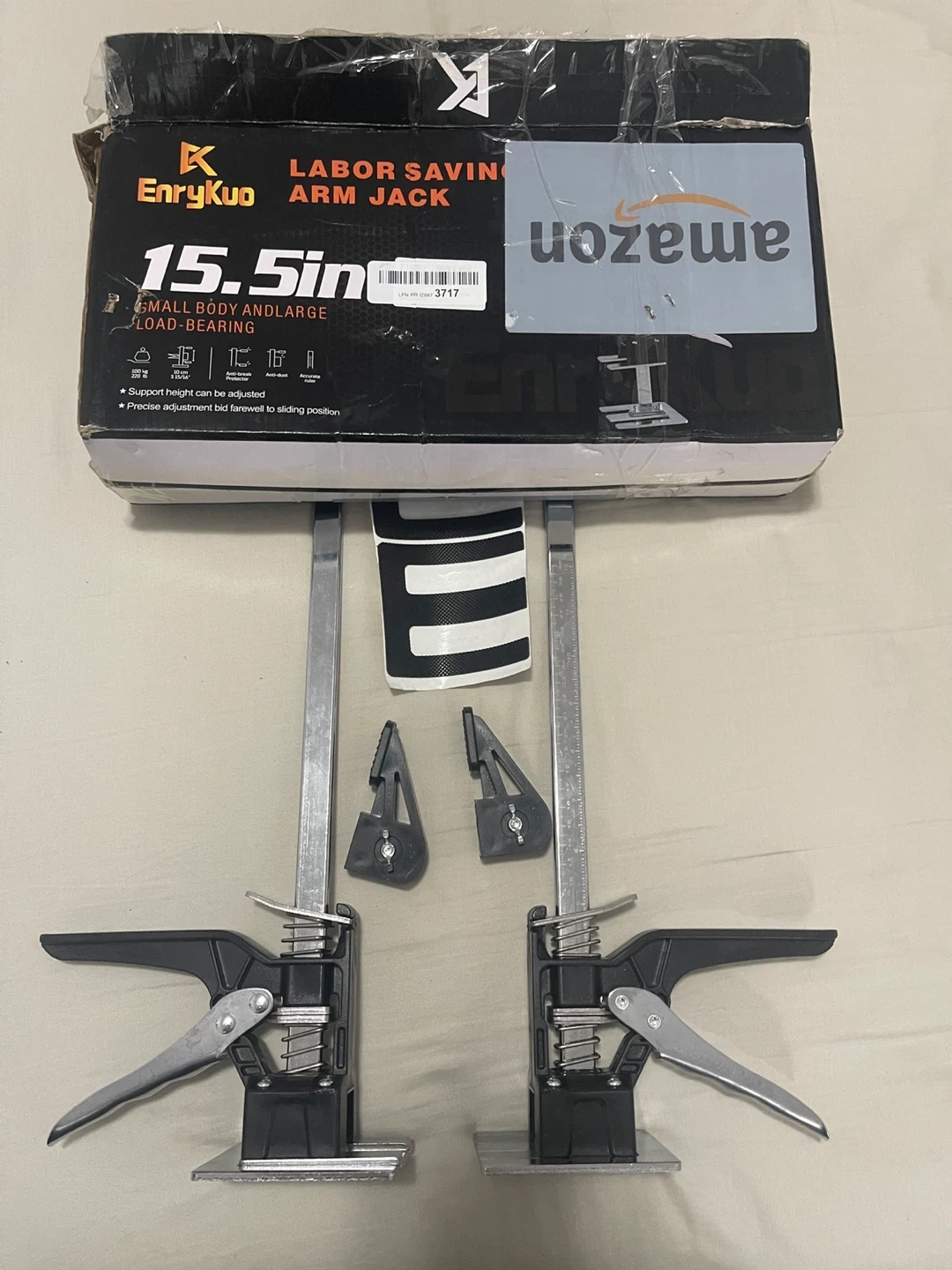 Selling a used Enrykuo Labor Saving Arm Jack 15.5in. It has a small body and large load-bearing capacity. The support height can be adjusted, and it offers precise adjustment to prevent sliding. The original box is included!
