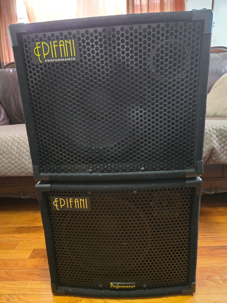 Selling my 2 Custom PS112 Epifani Performance bass speaker cabinets. 300 Watts 8 Ohms eachThis speakers are in great condition.Comes with the Original Epifani Covers and ready to rock! Perfect for any bassist looking for a quality sound. $ 1200 Dollars comes as a pair no negotiations or trade inns, must pick up