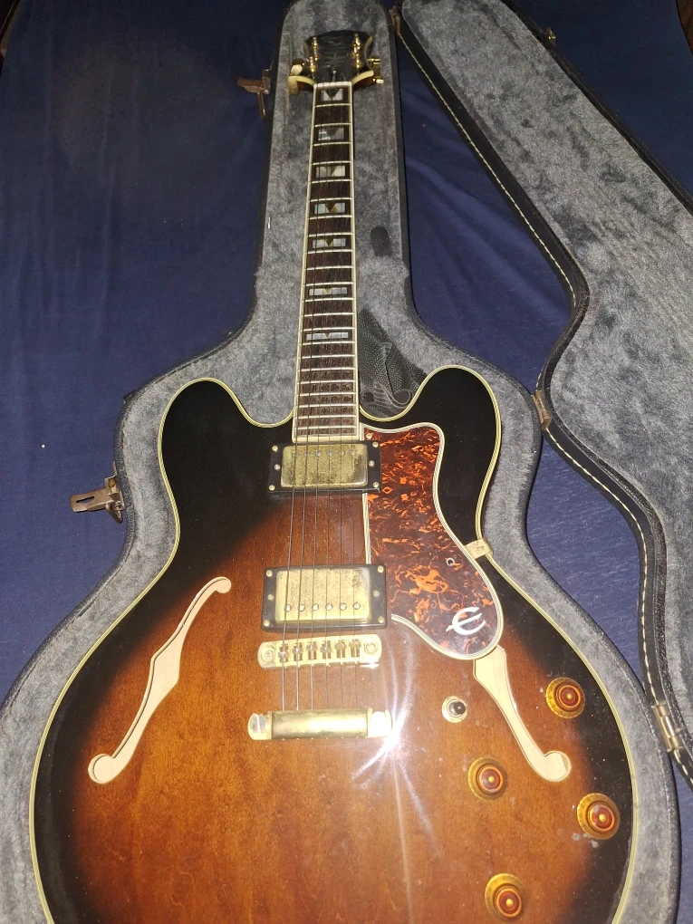 37Selling an Epiphone electric guitar, which comes with a case. It's in good condition and ready to play! Only serious inquiries.