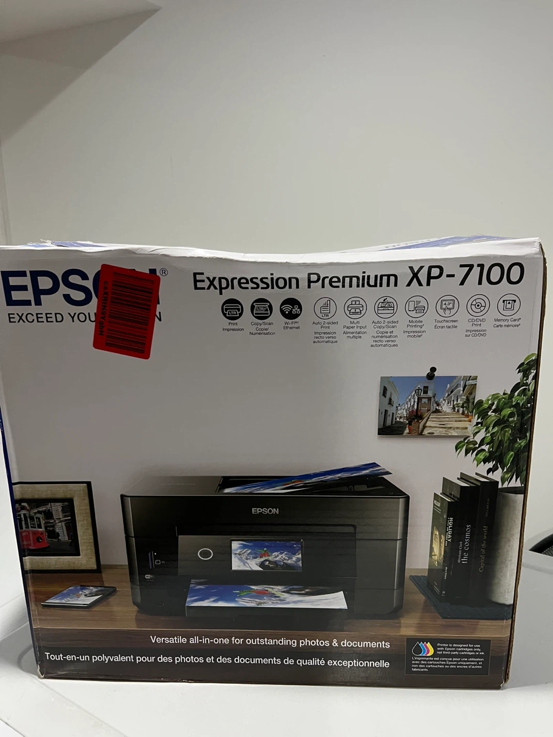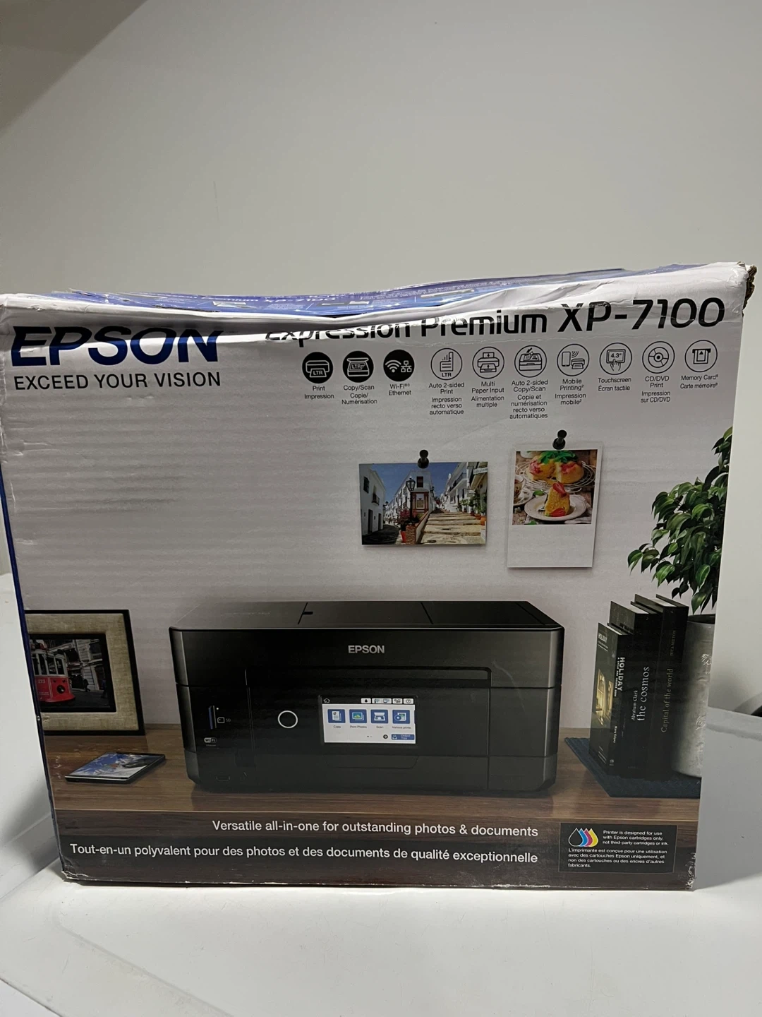 60Selling an Epson Expression Premium XP-7100 all-in-one printer! It's in great condition and comes with the original box. This printer is versatile for outstanding photos and documents. Perfect for printing, copying, and scanning needs!