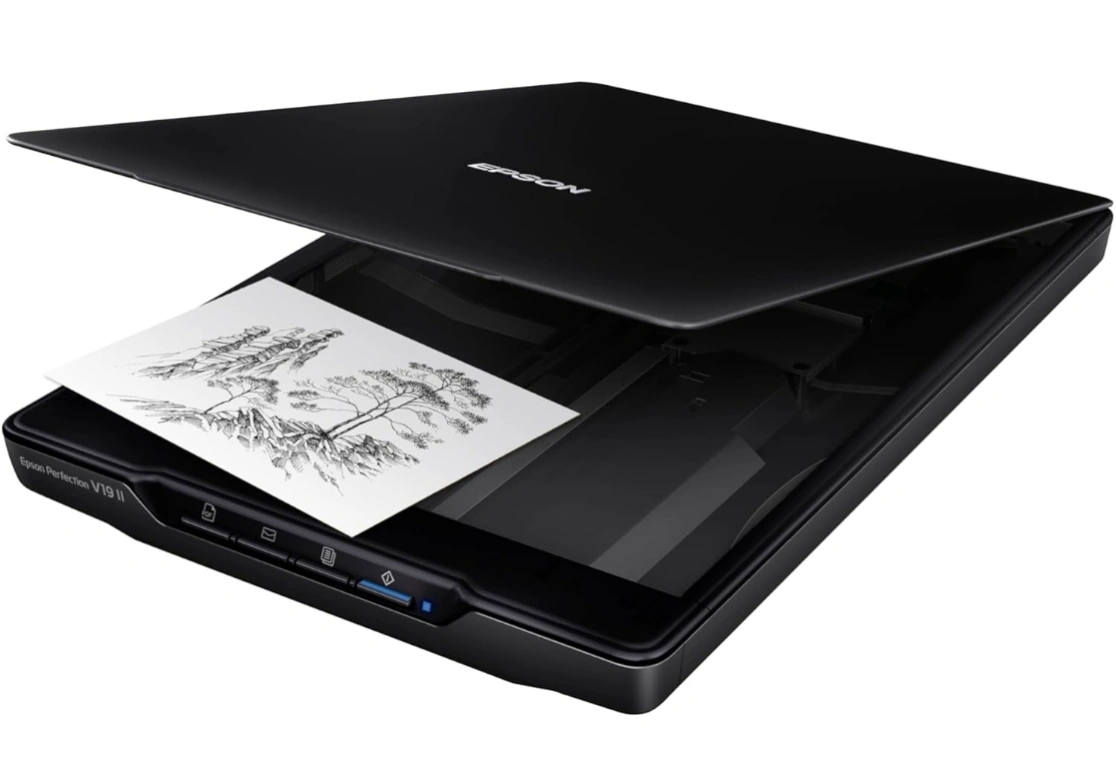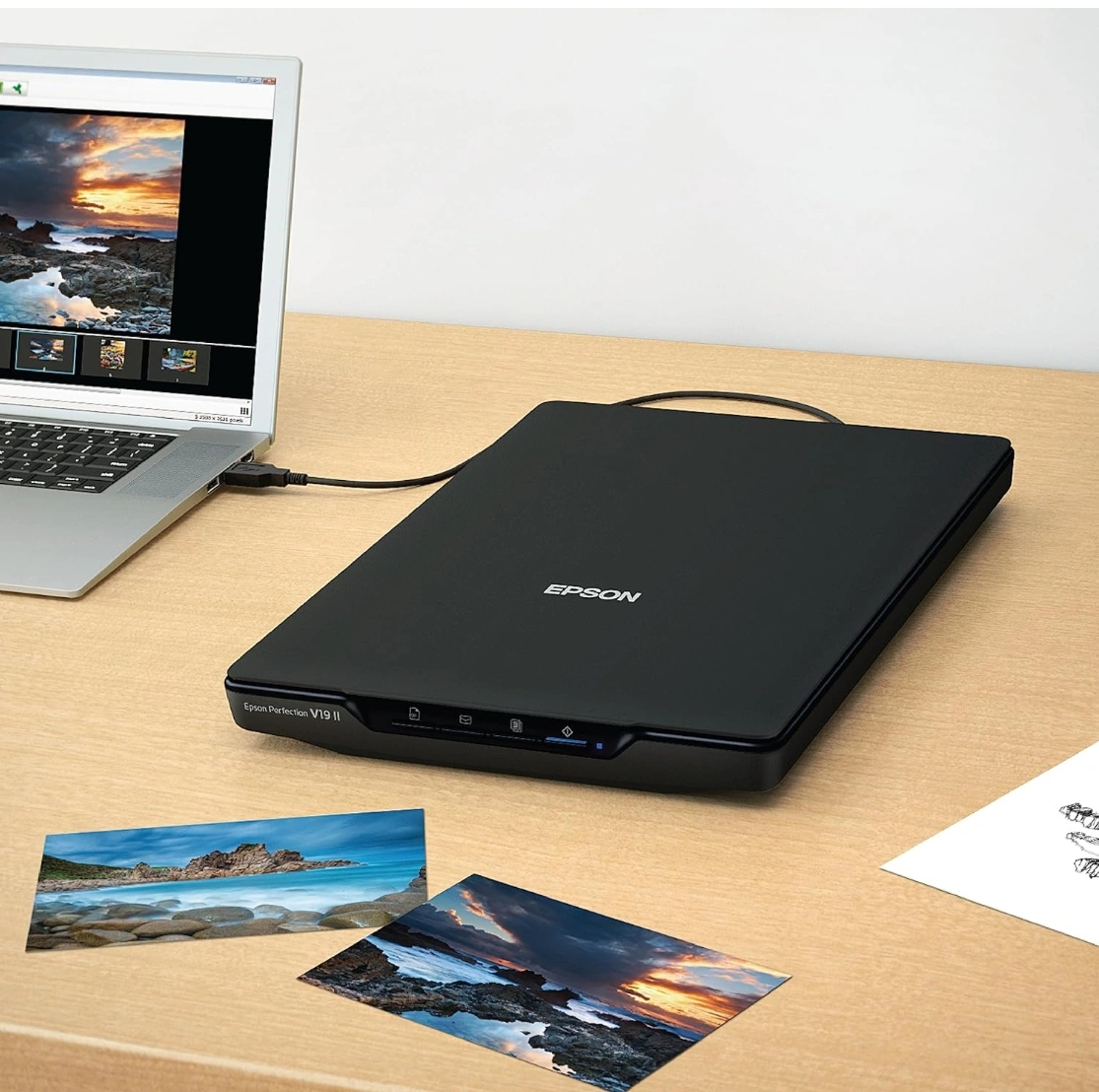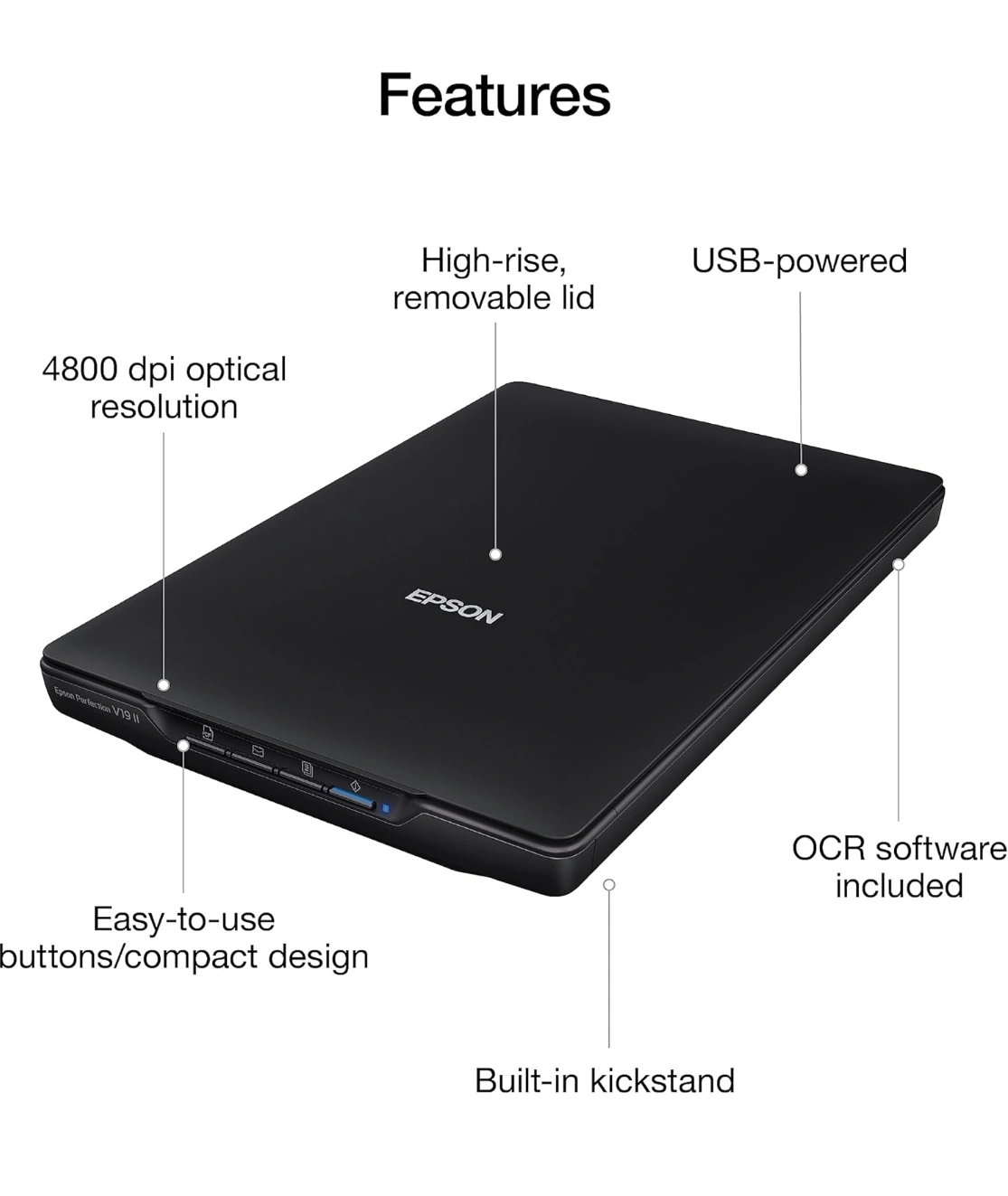 60Selling an Epson Perfection V19 II scanner in great condition! It's perfect for scanning photos and documents. It features easy-to-use buttons, a compact design, and a built-in kickstand. It's also USB-powered, so no need for an extra power adapter. The scanner has a high-rise, removable lid and includes OCR software