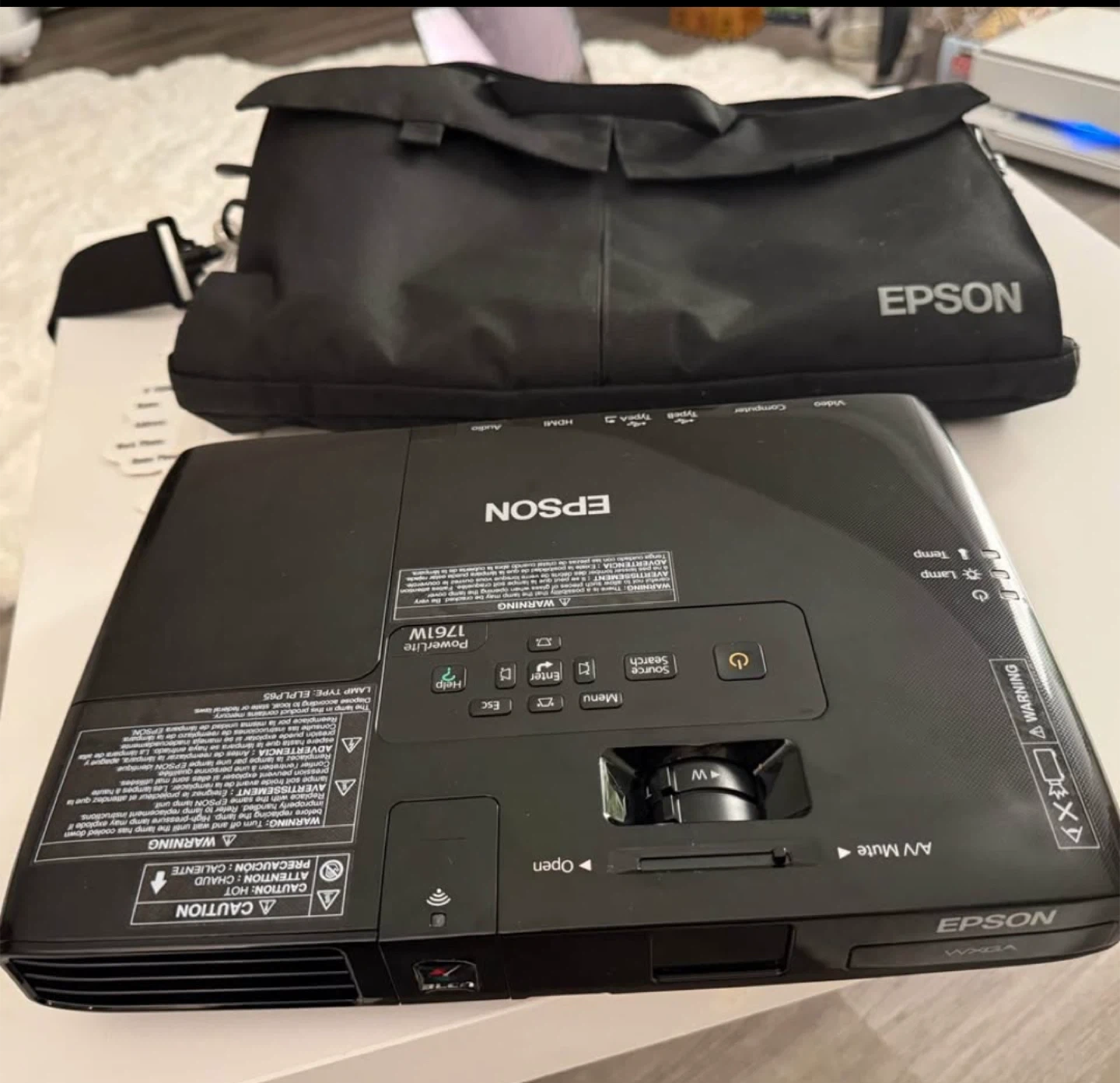 112Selling an Epson PowerLite 1761W projector. It comes with a carrying bag for easy transport. Great for presentations, movies, or gaming!