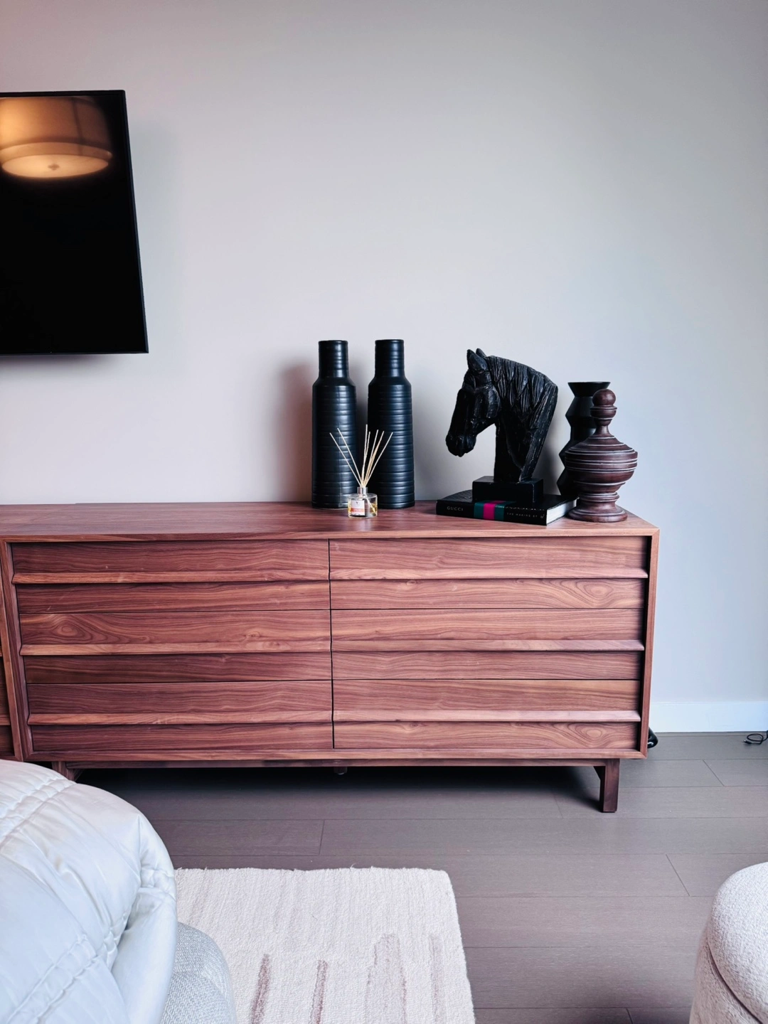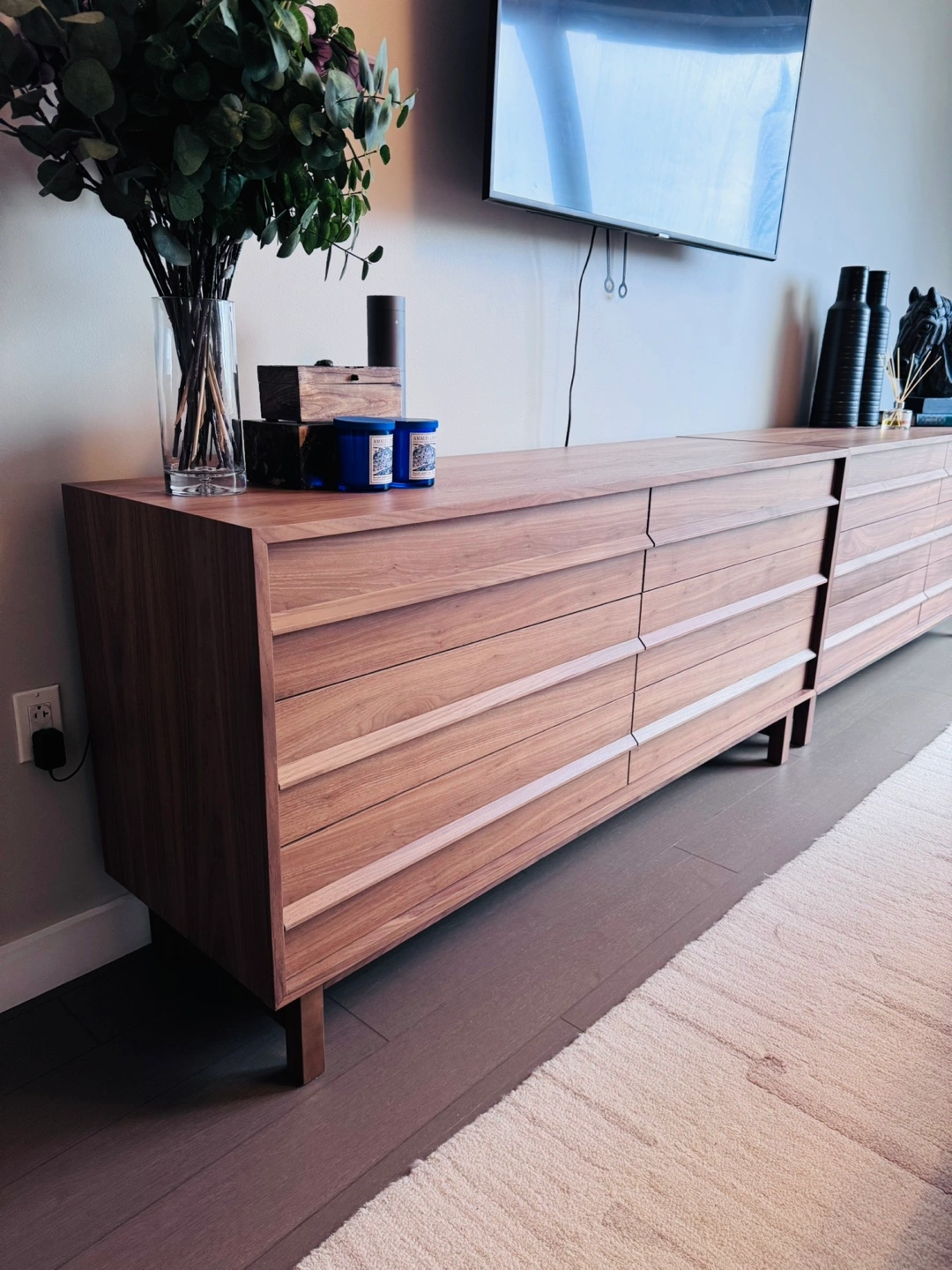 Two Beautiful walnut dresser. Six drawers each. Minimalist modern style. Excellent condition. 6 months old - relocating for work in the U.K - need to offload it. Paid $1,975 each dresser. Selling as a pair ***