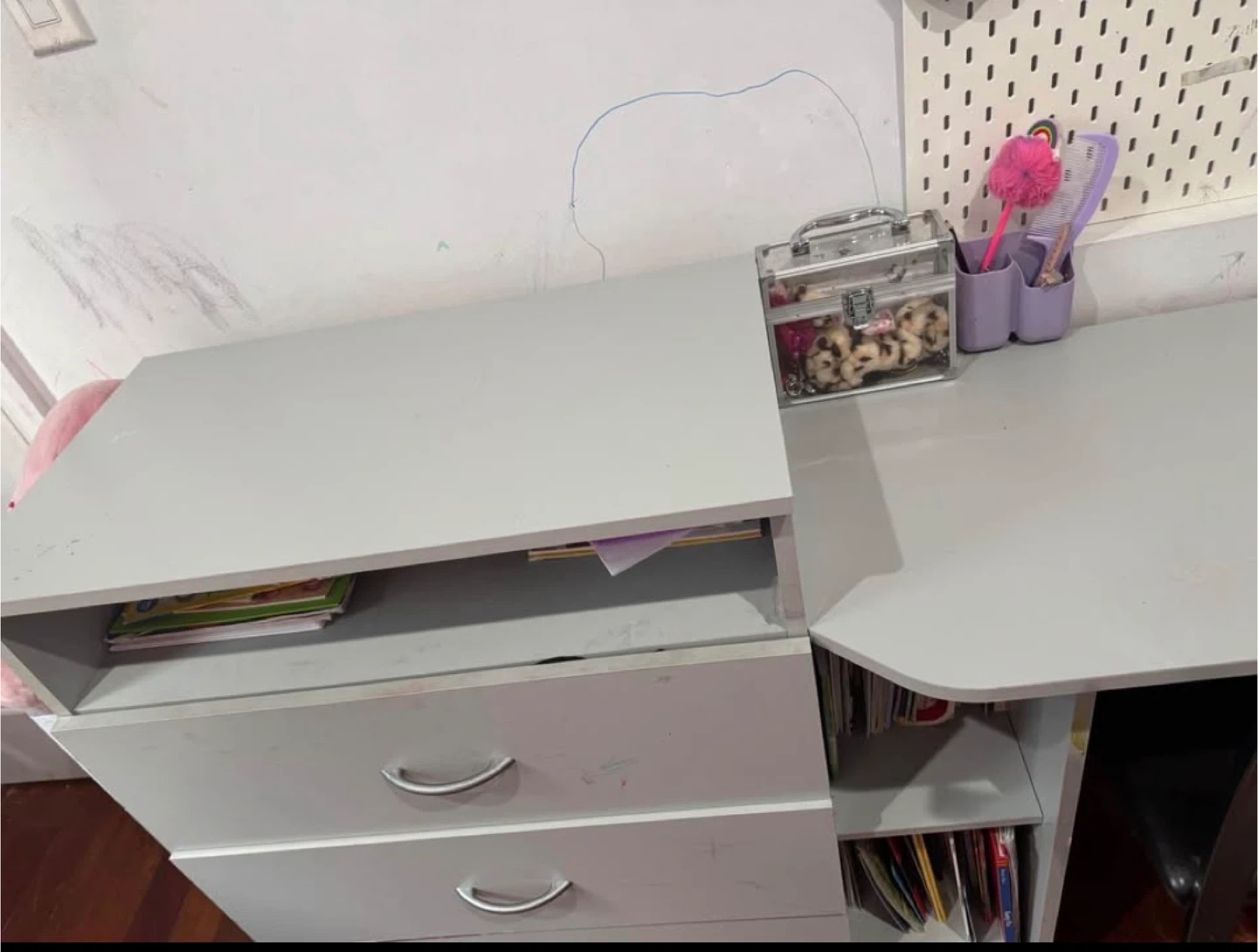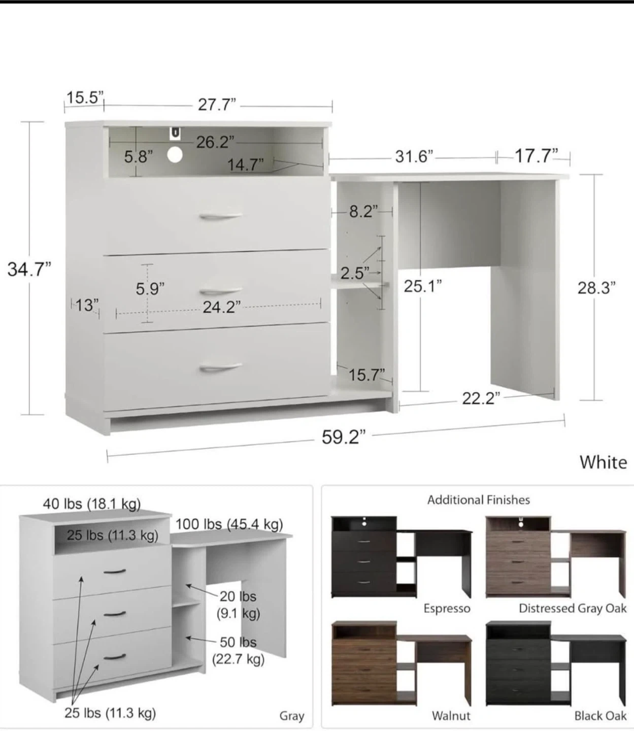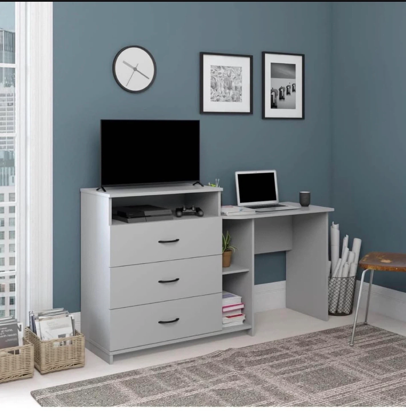 Gray 3-Drawer Dresser with Desk Combo