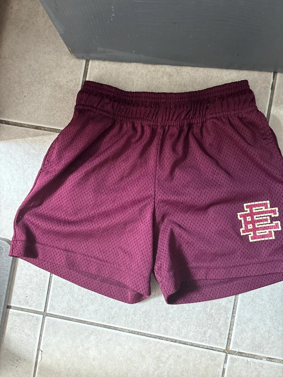 Selling a pair of Eric Emanuel EE Basic Shorts in maroon. These shorts are perfect for casual wear or sports activities. They feature the iconic EE logo and a comfortable fit. Great for everyday wear!