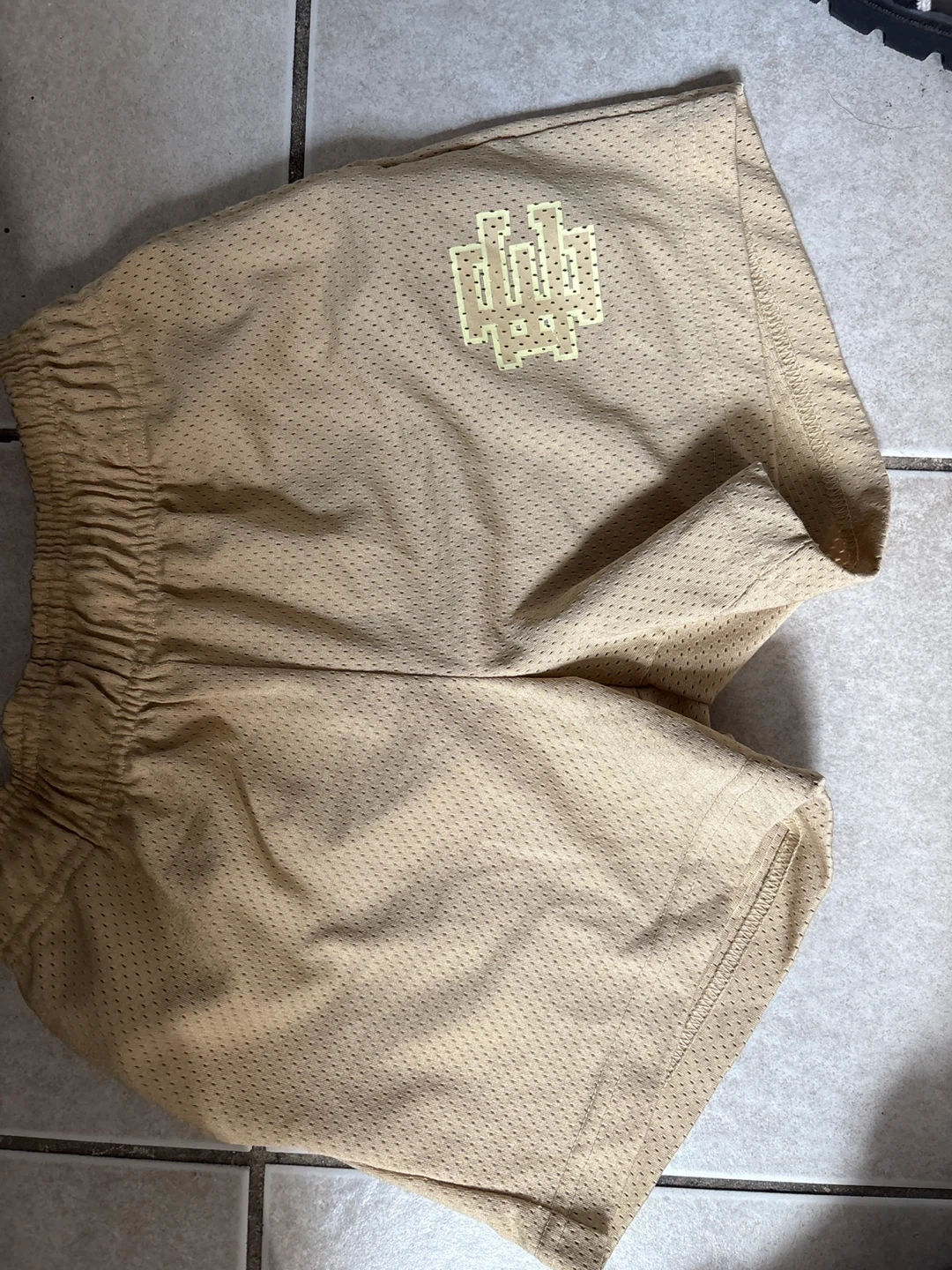 Selling a pair of Eric Emanuel EE Basic Shorts in tan. They're in great condition and ready for a new home! These shorts are perfect for casual wear or workouts. They feature a comfortable elastic waistband and a breathable mesh fabric. The iconic EE logo is embroidered on the leg