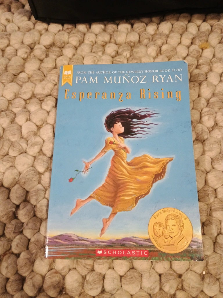 Scholastic paperback book by Pam Muñoz Ryan. Gold sticker on cover.