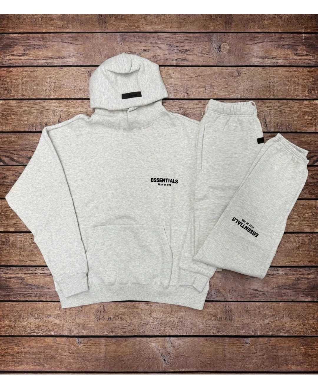 20Selling a comfy Essentials Fear of God matching set! Includes a hoodie and sweatpants in a light gray color. The material is soft and cozy, perfect for lounging or casual wear