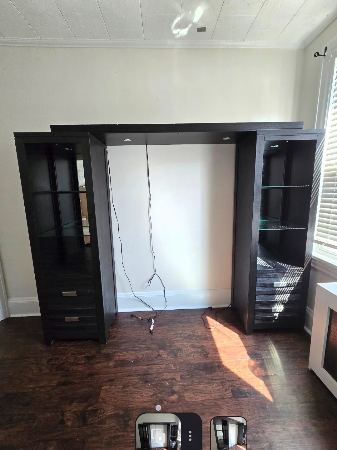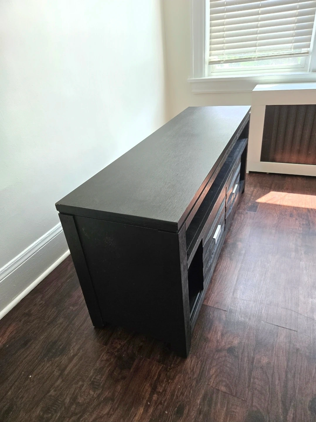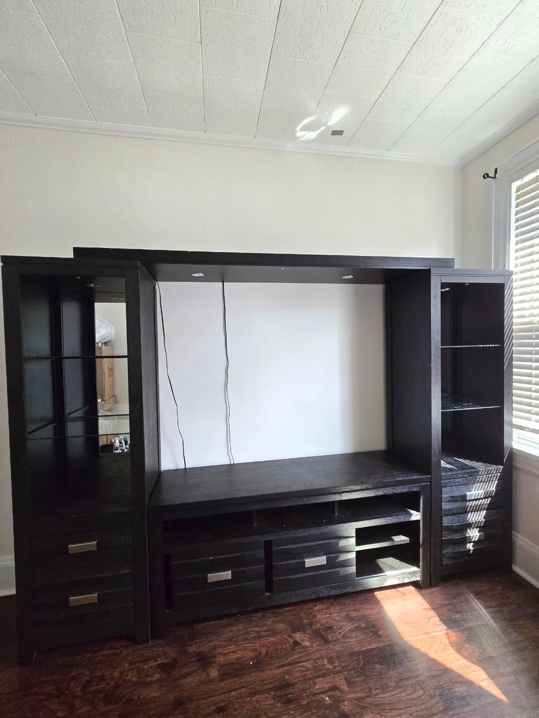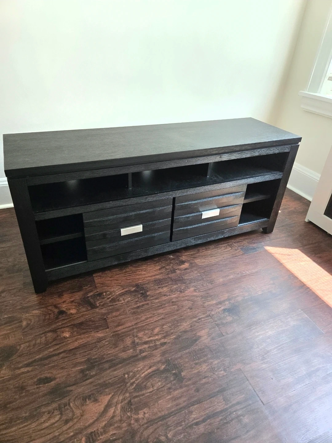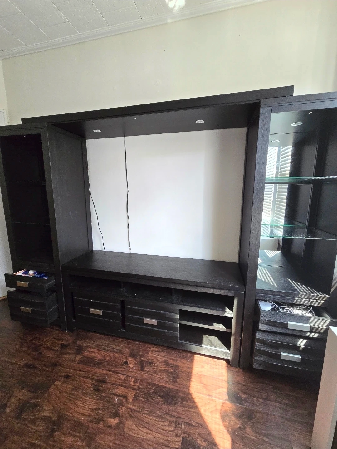 10estante para sala con su mesas de tv marrón oscuro se vende muy acogedor