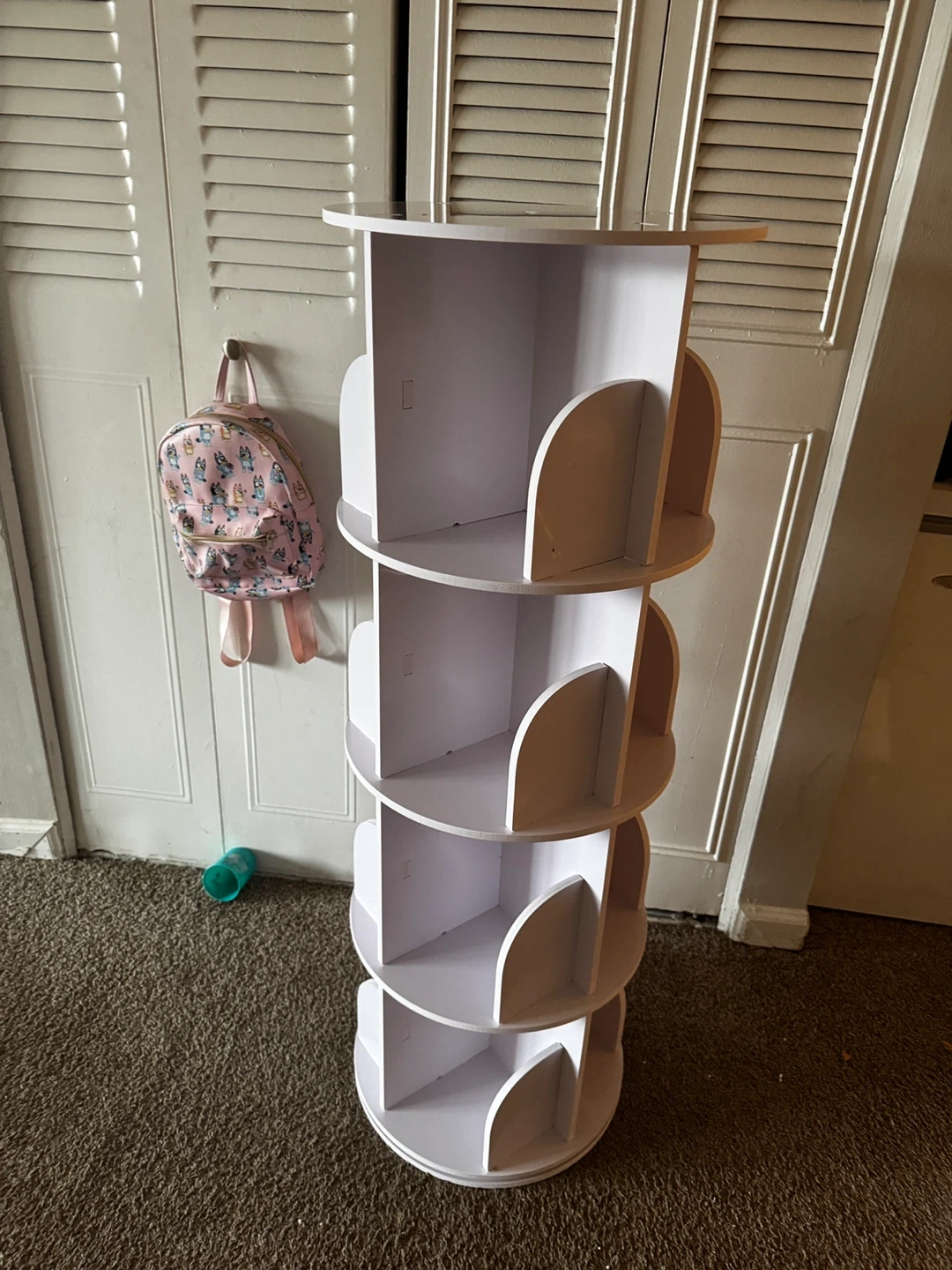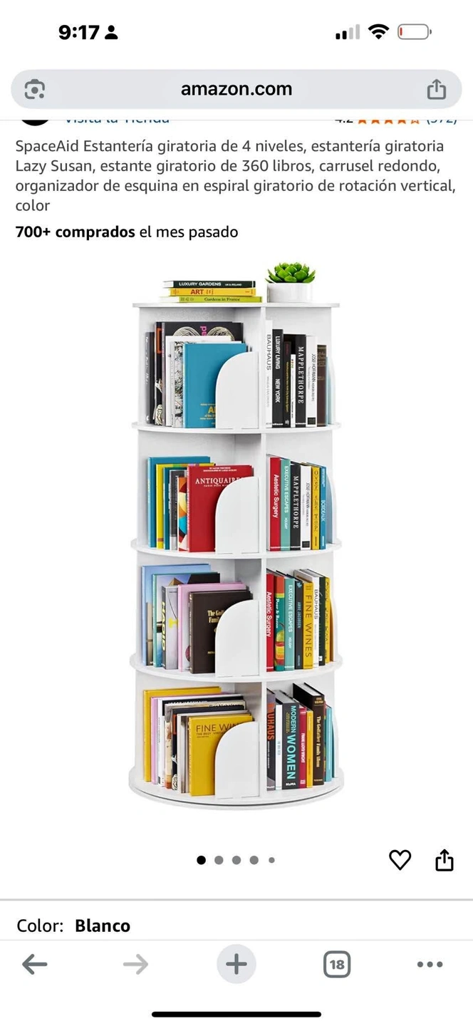10SpaceAid Estantería giratoria de 4 niveles, estantería giratoria Lazy Susan, estante giratorio de 360 libros, carrusel redondo, organizador de esquina en espiral giratorio de rotación vertical, color Blanco