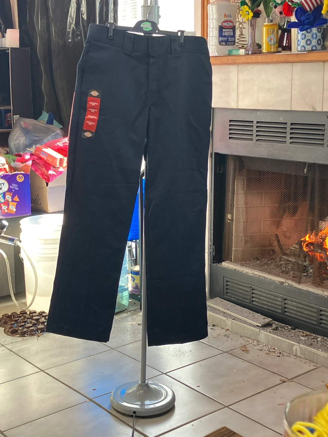 Dickies 874 Original Fit Flex pants in navy blue. These pants are designed for durability and comfort, featuring a classic straight leg. Flex fabric offers ease of movement. They're perfect for work or everyday wear!