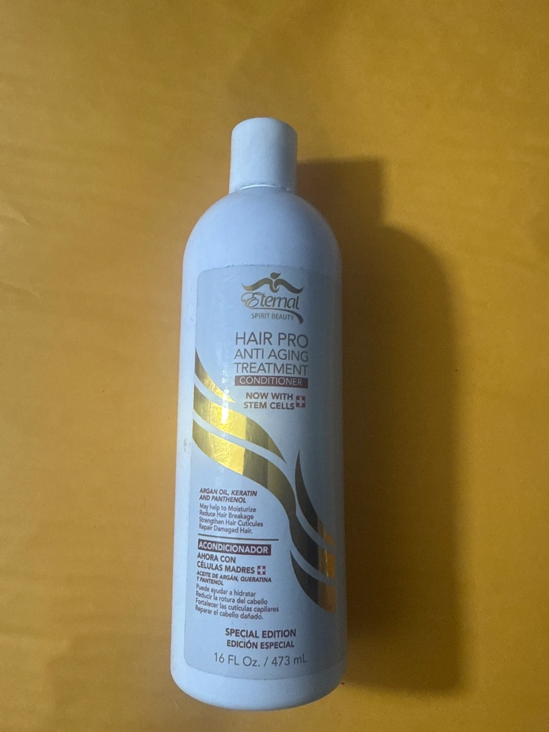 I'm selling a bottle of Etemal Spirit Beauty Hair Pro Anti Aging Treatment Conditioner. It's a special edition and contains 16 fl oz / 473 mL. It's formulated with argan oil, keratin, and panthenol to help moisturize, reduce hair breakage, strengthen hair cuticles, and repair damaged hair