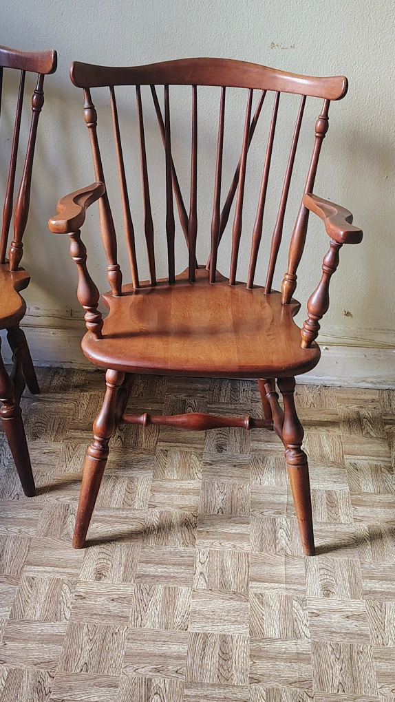 221Selling an Ethan Allen spindle back chair with a nutmeg finish. It's in great condition and ready for a new home! The chair has a classic design that fits well with many decor styles I have 2 chairs. one with armrest and one without.