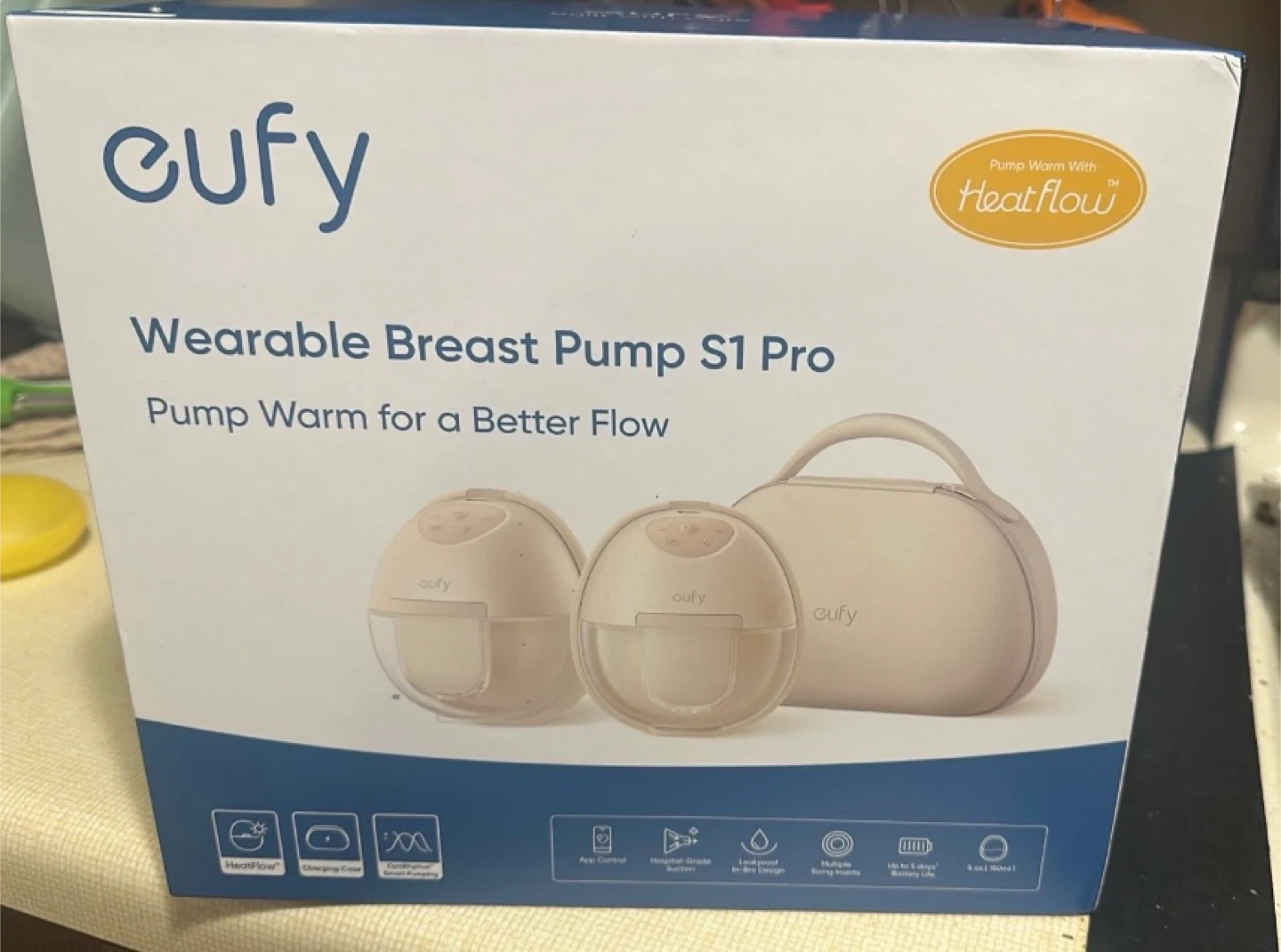 Selling a Eufy Wearable Breast Pump S1 Pro. It comes with the box and all the components. Included are Diaphragms x2, Duckbill Valve x4, and Spout Cap x4. This pump warms for a better flow!