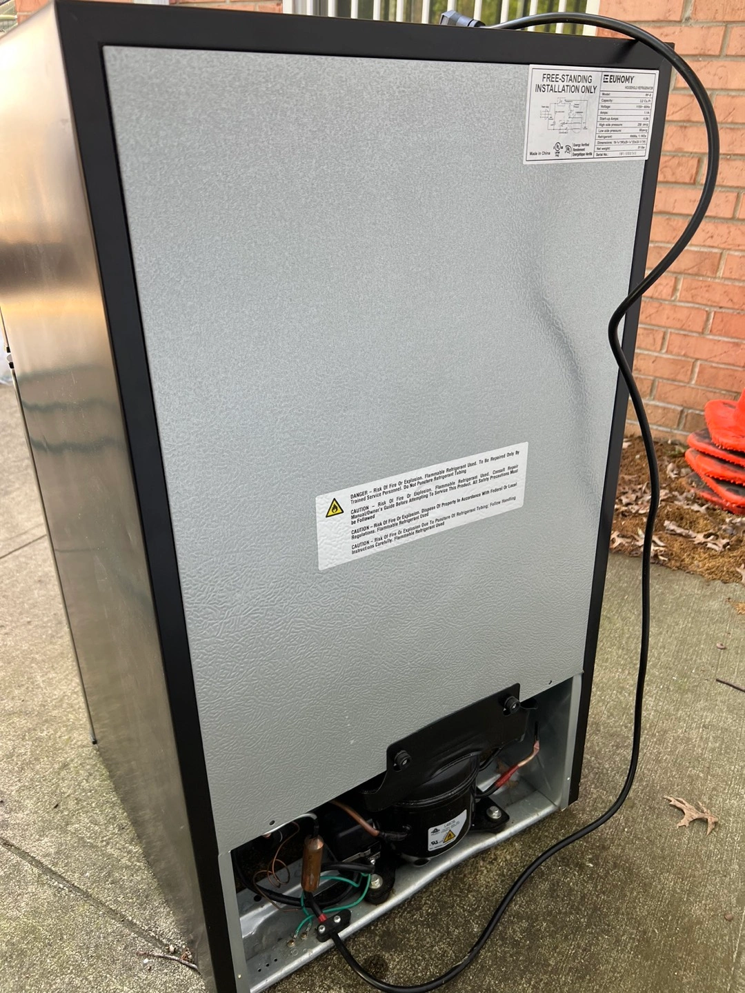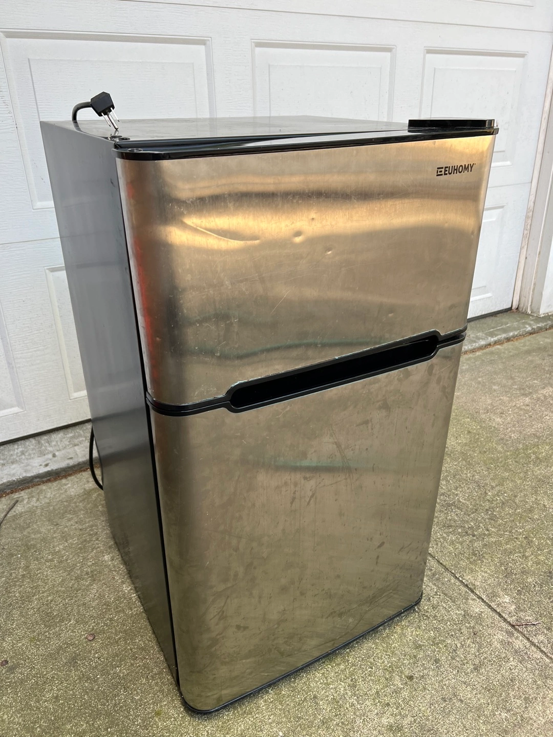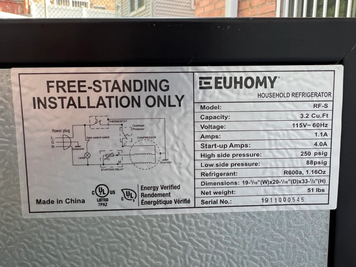 20Product Dimensions: 19.7"D x 18.9"W x 33.07"H Brand: E EUHOMY Capacity: 3.2 Cubic Feet Configuration: Freezer-on-Top Color: Silver Special Feature: Adjustable Shelves Installation Type: Freestanding Number of Doors: 2 Defrost System: Automatic Voltage: 115