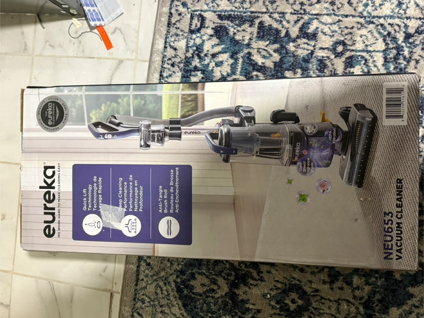 31Selling a brand new Eureka NEU653 vacuum cleaner, still in its original packaging! This vacuum features Quick Lift Technology for easy cleaning and deep cleaning performance. It also has an anti-tangle brush roll, making it great for homes with pets. Get yours today!