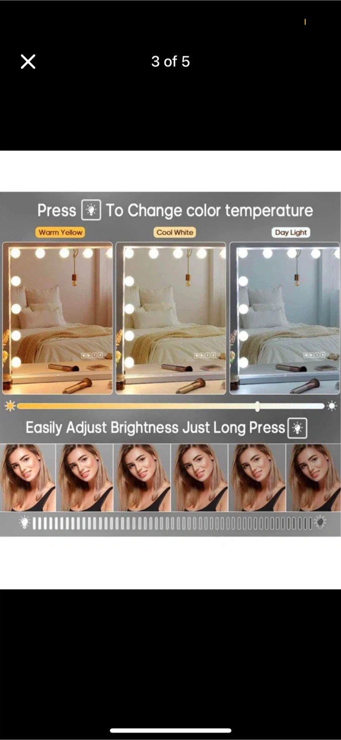 This LED vanity mirror allows you to change the color temperature and easily adjust the brightness with a long press. It features warm yellow, cool white, and daylight settings to suit your needs