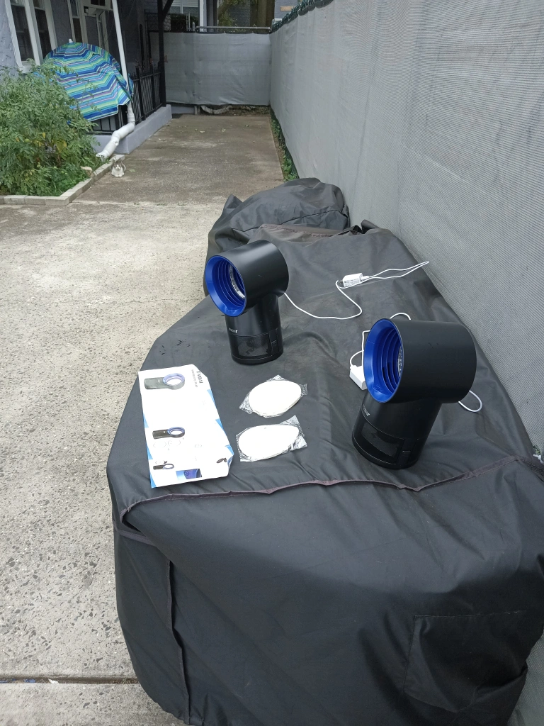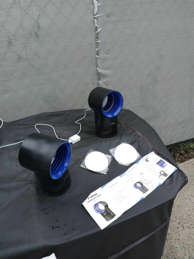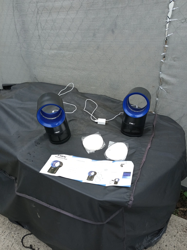 Selling a Evai mosquito traps. Black with a blue light inside. Includes the instruction manual and replacement filters. Great for keeping those pesky bugs away!