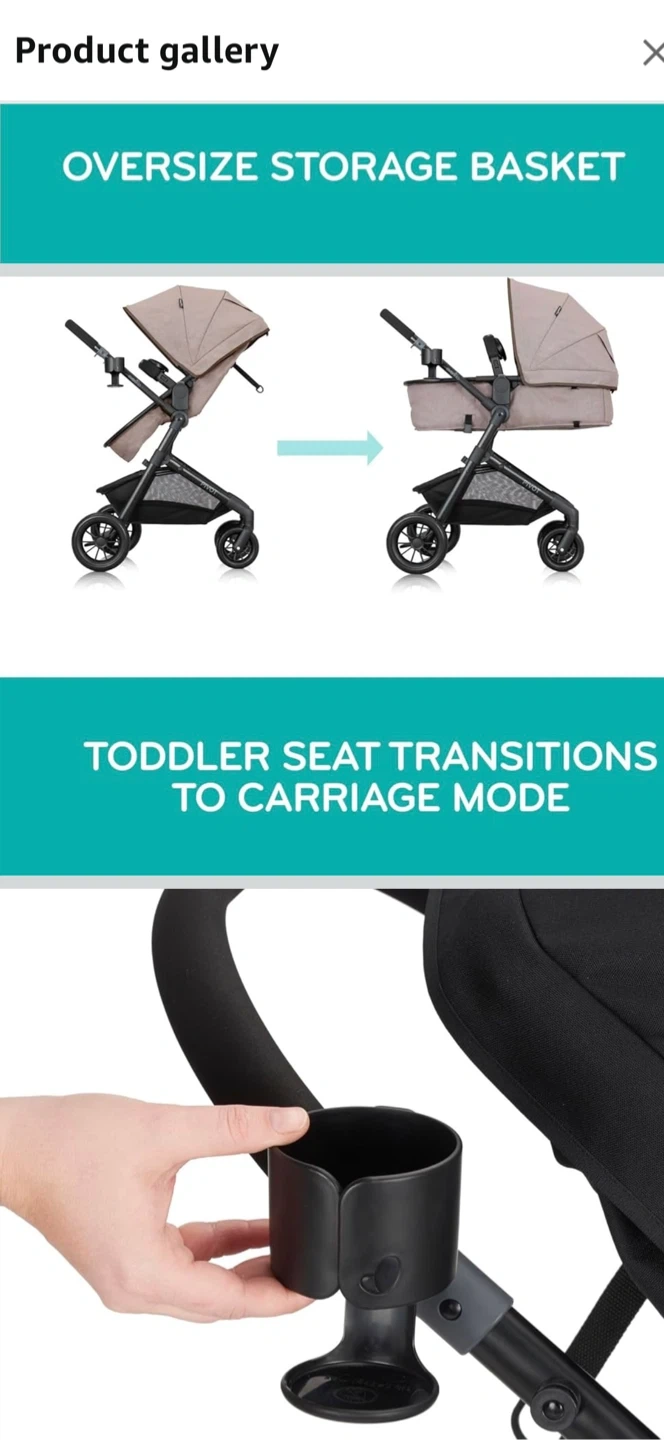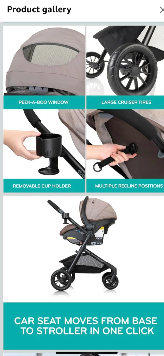 This Evenflo Pivot Xplore stroller wagon is ready for your little one! It features: - A peek-a-boo window - Large cruiser tires - Removable cup holder - Multiple recline positions - Car seat moves from base to stroller in one click - Oversize storage basket - Toddler seat transitions to carriage mode - 6 modes offers versatility on the go