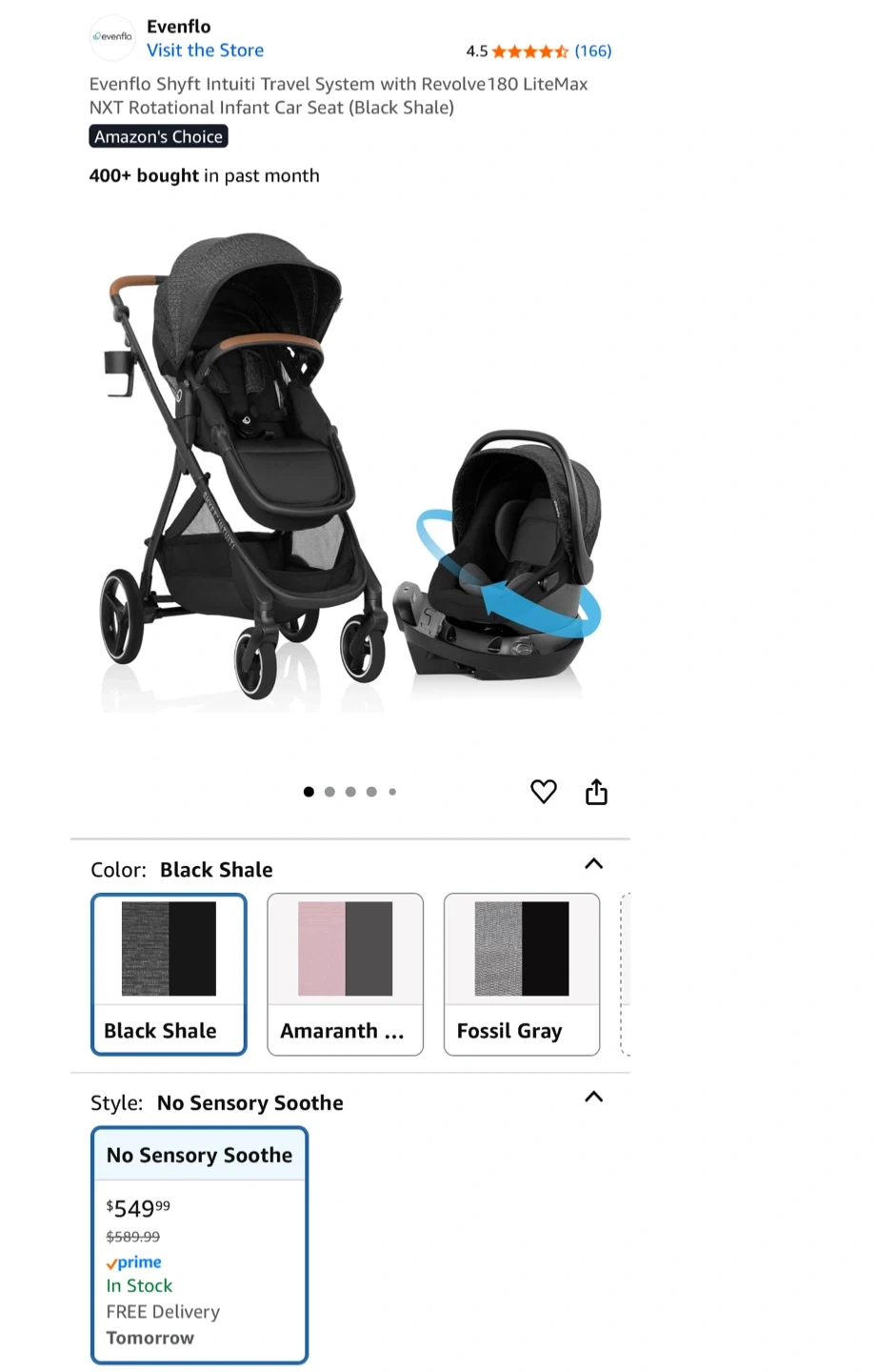 Selling an Evenflo Shyft Intuiti Travel System with Revolve 180 LiteMax NXT Rotational Infant Car Seat in Black Shale. The box is included. This travel system features smooth rides, effortless ins and outs, and amazing transitions New in box. Box is a little torn but you can make sure everything is good before you leave