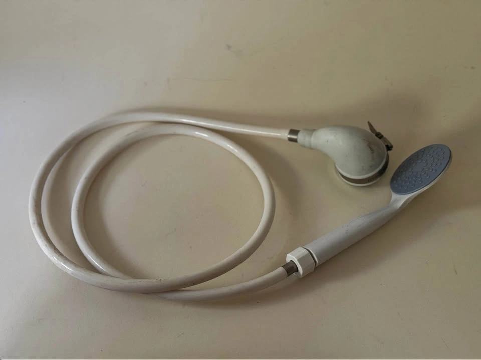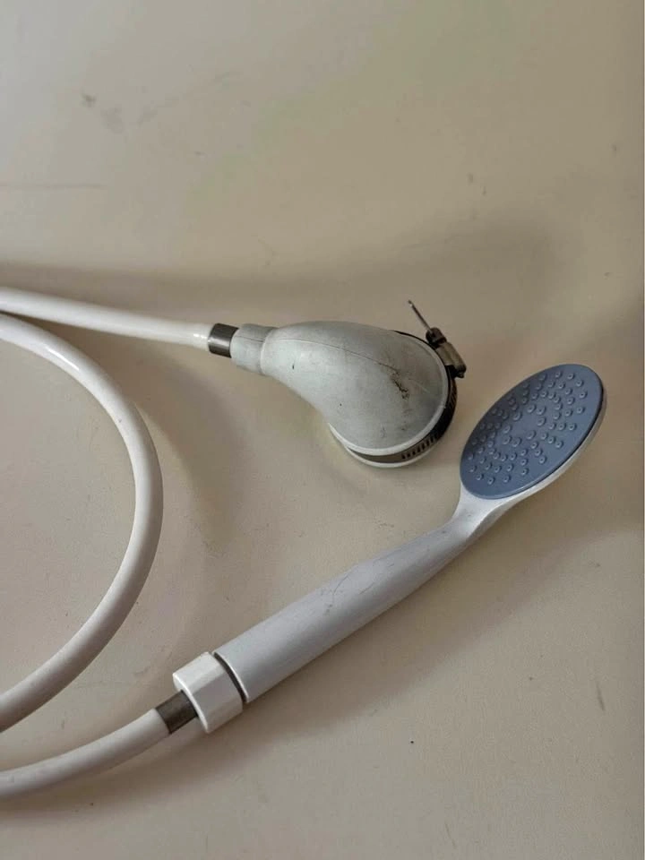 75Everbilt slip-on tub spout hand shower in white. • Easily installs on tub spouts without diverters • Includes 48” flexible hose and single spray shower head • Tool-free hose clamp for secure fit • Great for bathing kids, pets, or quick cleaning Condition: Pre-owned, shows wear but works fine. Pickup in Bed-Stuy, Brooklyn
