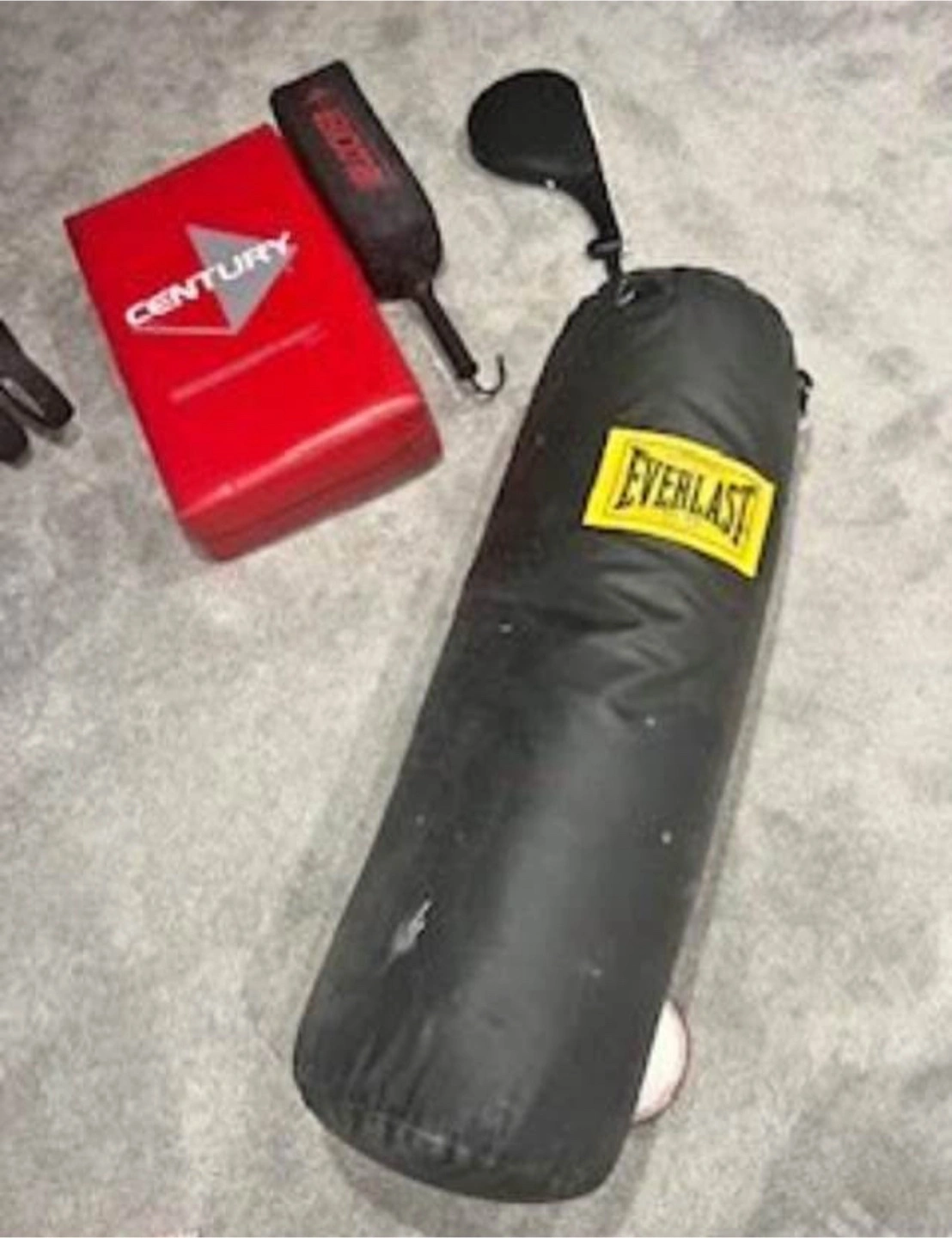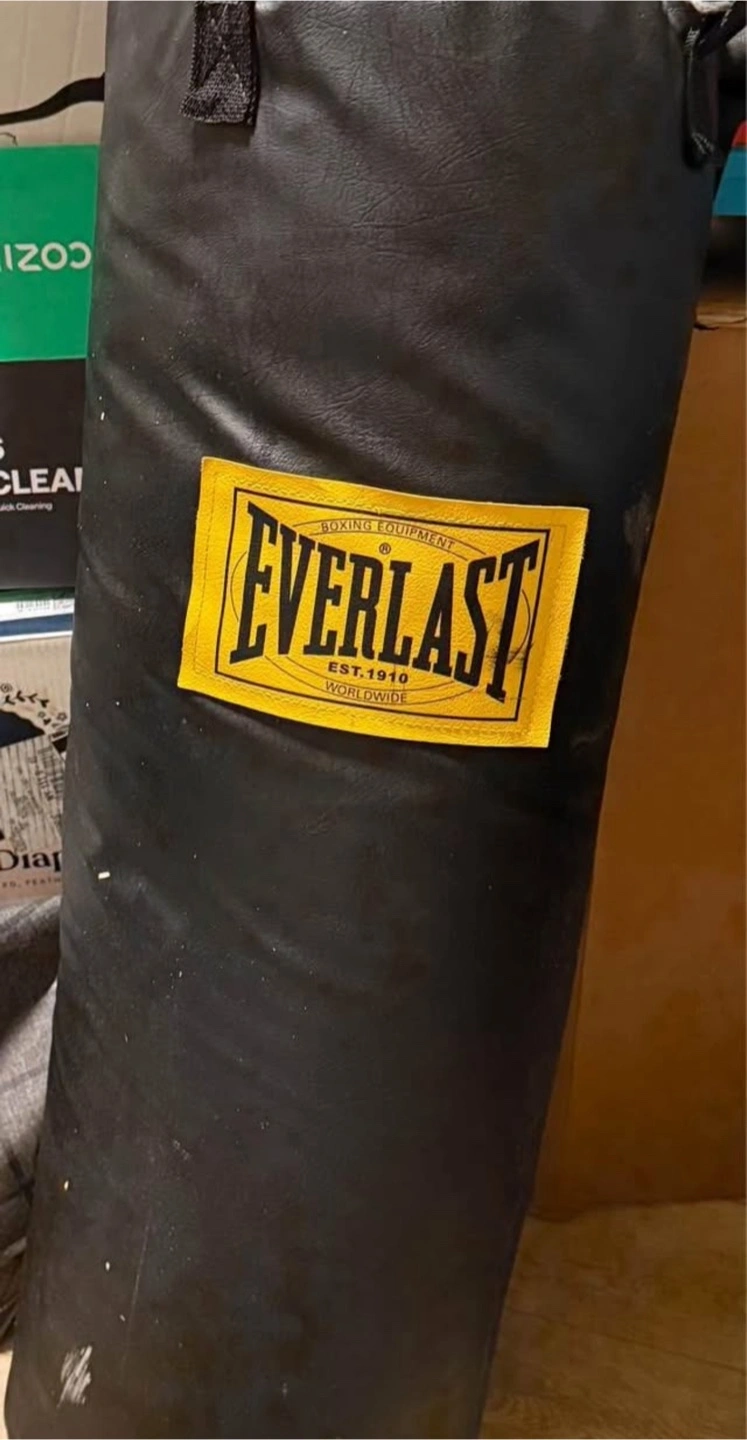 21A classic heavy bag, in black. Looks to be leather or a similar material. A nice tool to help you unwind after a long day.