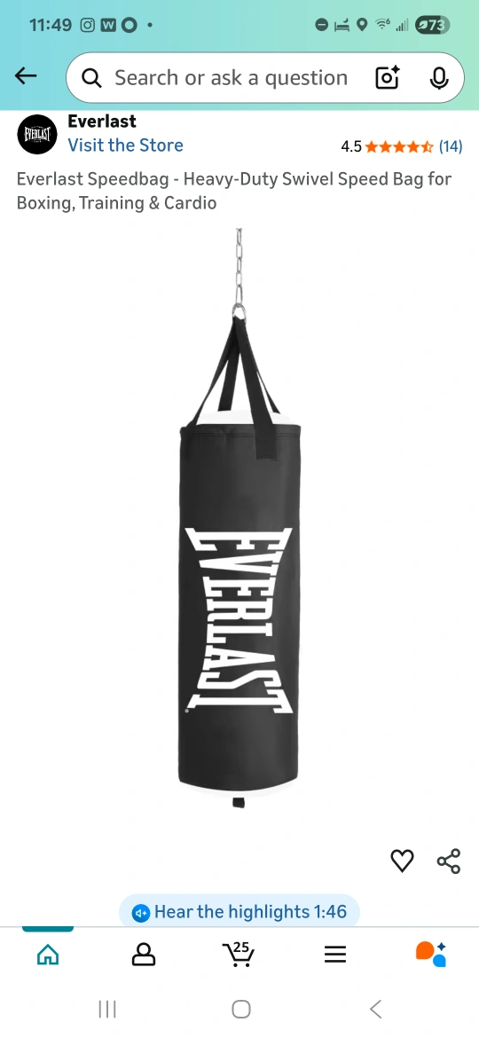 10Selling a brand new Everlast Heavy-Duty Swivel Speed Bag! It's still in its original box and ready for some serious boxing, training, and cardio. Get ready to improve your speed and coordination! Comes with Pro Style Training Gloves-black Brand new. 70lbs Very heavy, can be moved by 2 ppl, or 1 strong guy.