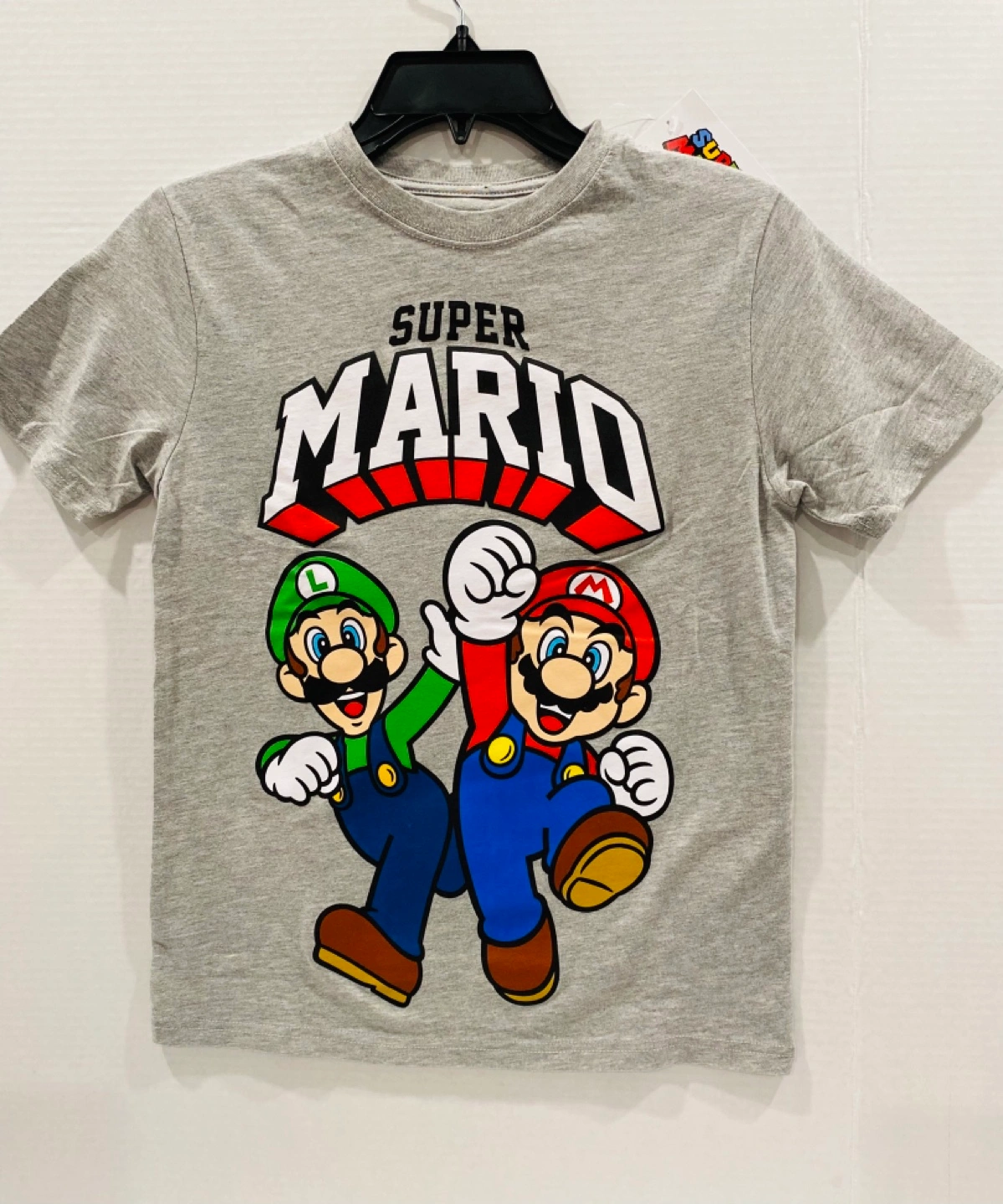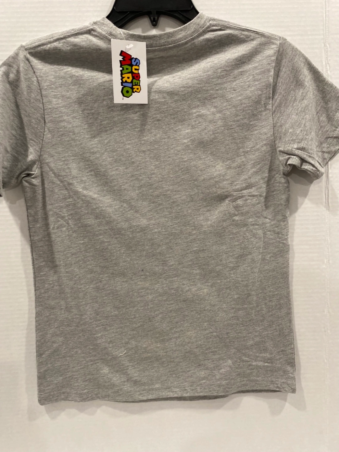 Gray short sleeve t-shirt. Features Super Mario and Luigi graphic. Size 10/12. New with tags. Camiseta gris de manga corta. Presenta gráficos de Super Mario y Luigi. Talla 10/12. Nuevo con las etiquetas