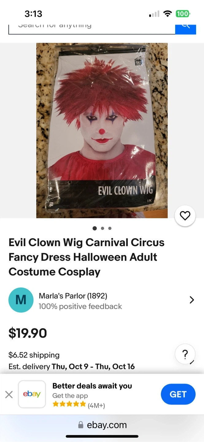 Want to be an evil clown this Halloween. This was worn once needs to be combed out from being in the package see pic. Negotiable make offer.