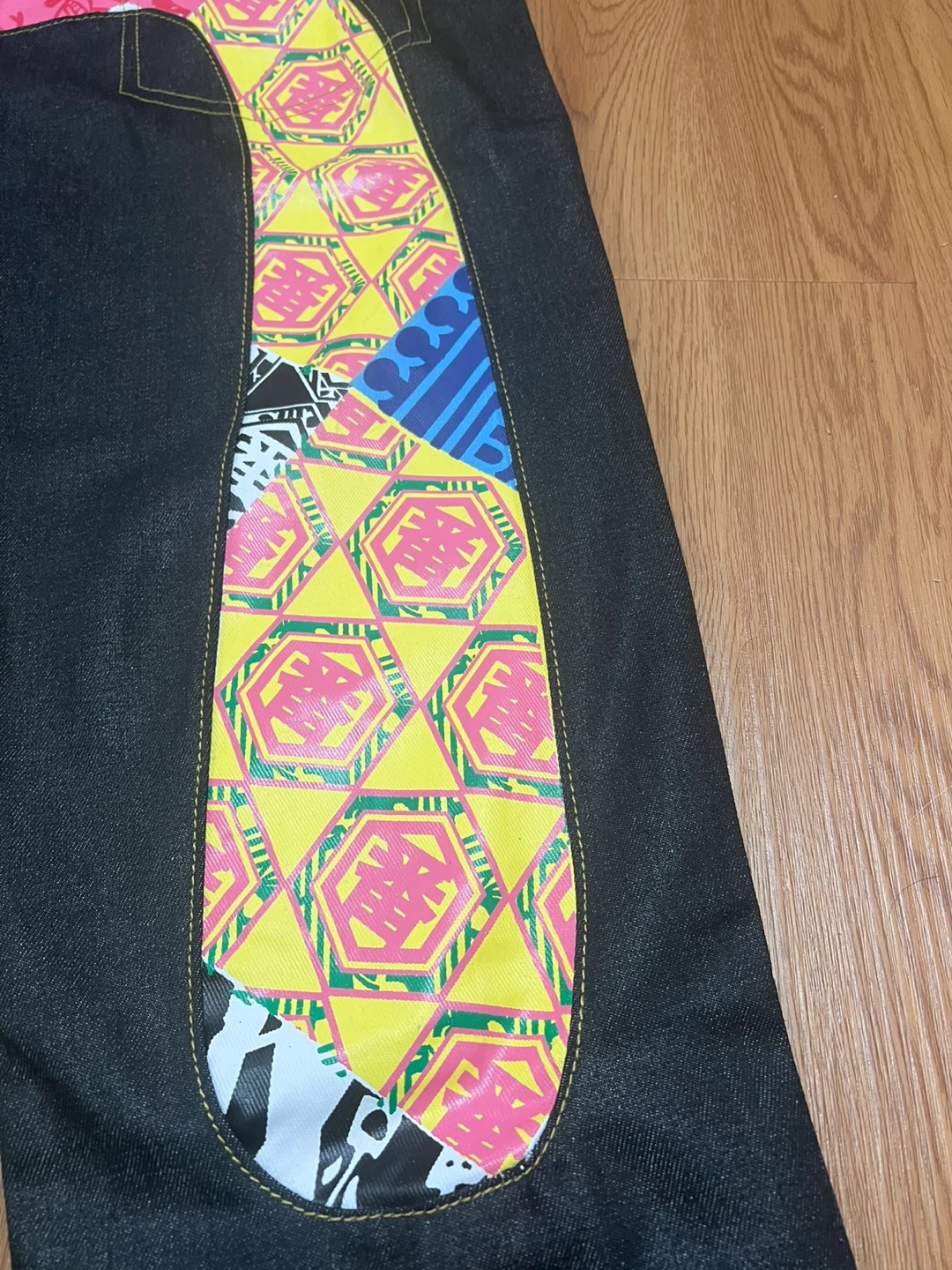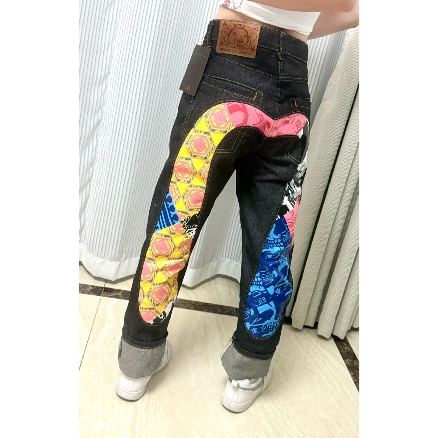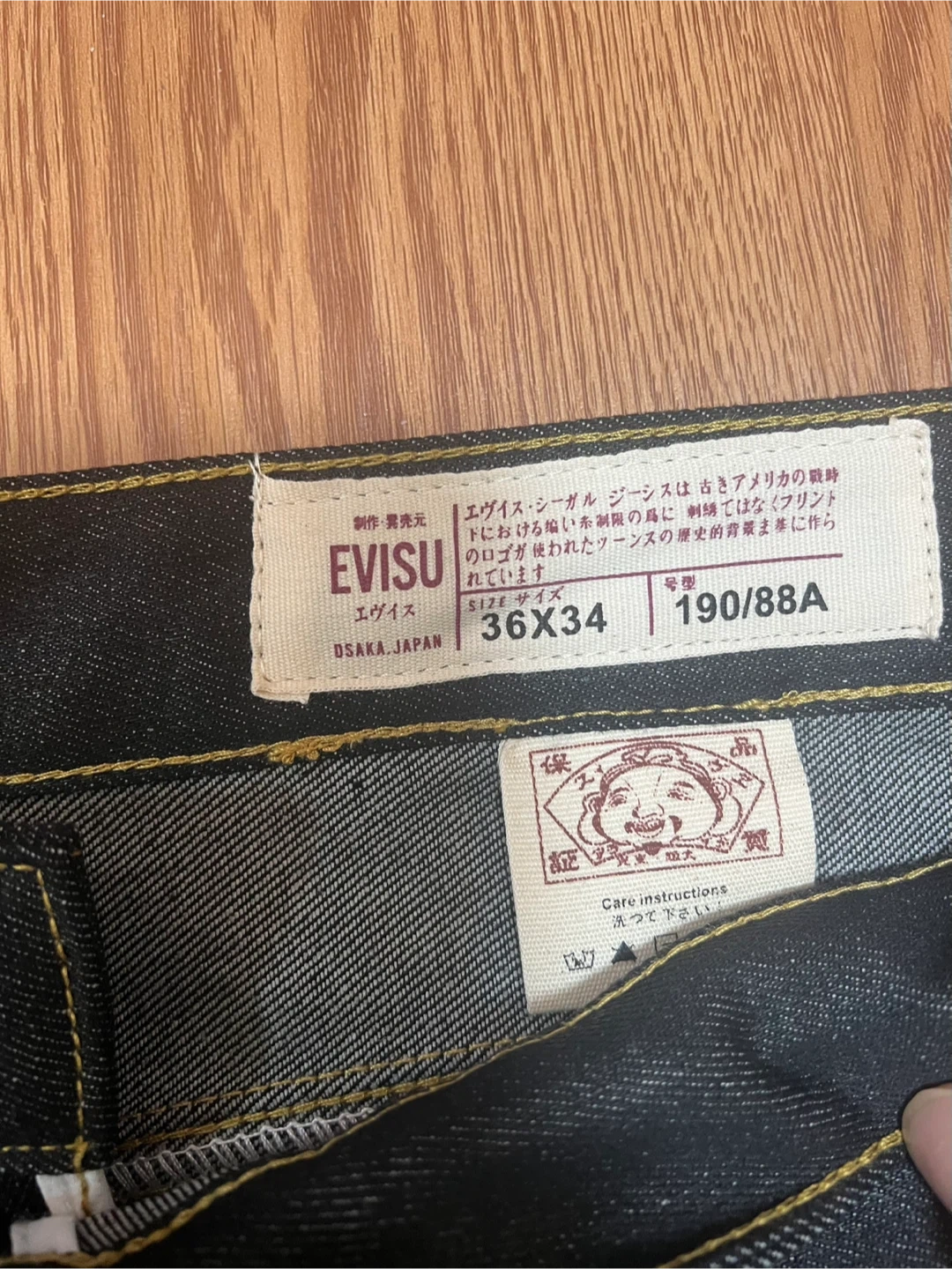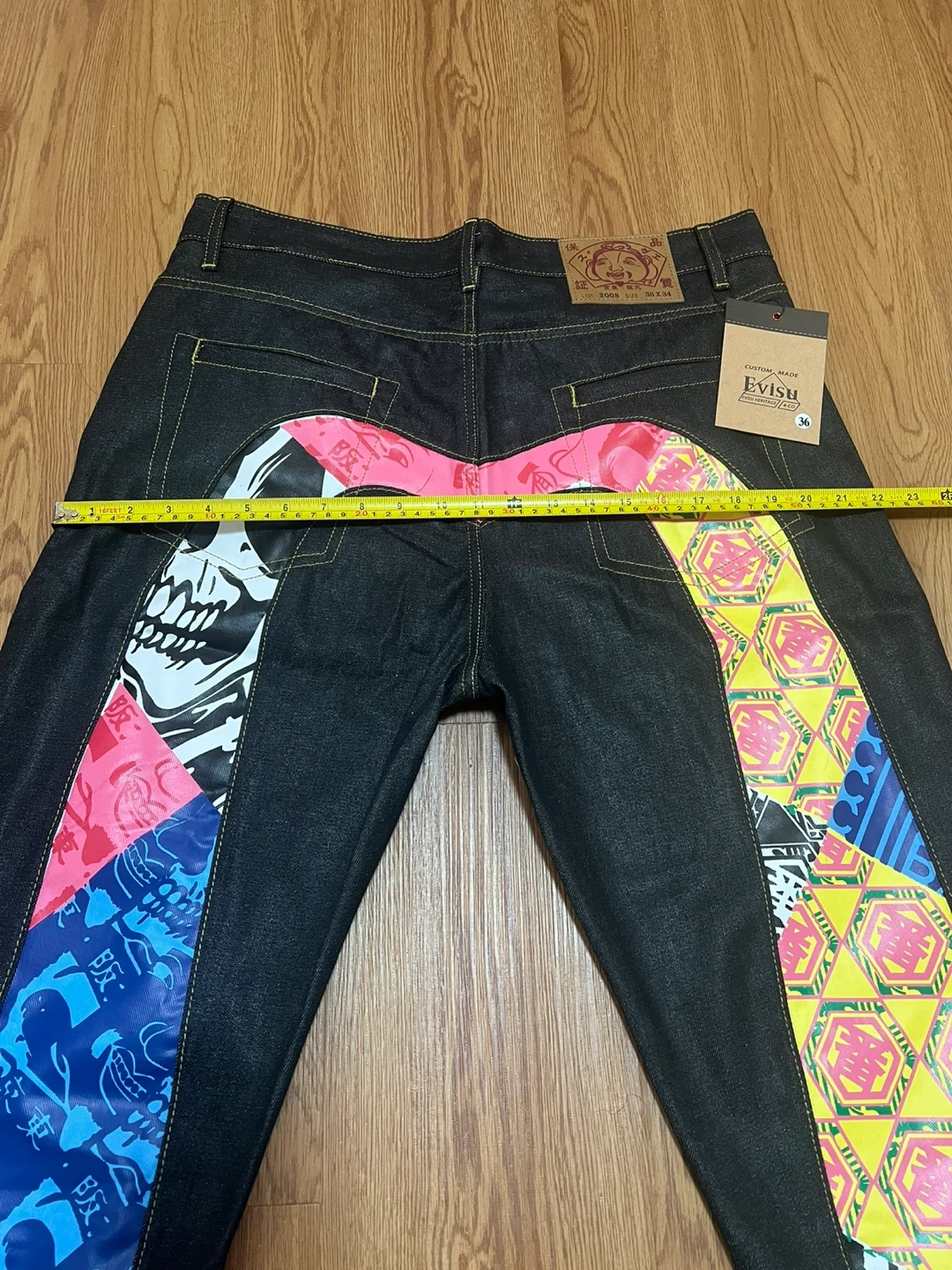 10Selling a pair of Evisu jeans These jeans have a unique design with colorful patterned patches on the back. They're in great condition and ready for a new home! Available sizes: 32*32,34*34,36*34,38*36 Better size up since it runs smaller than US sizes