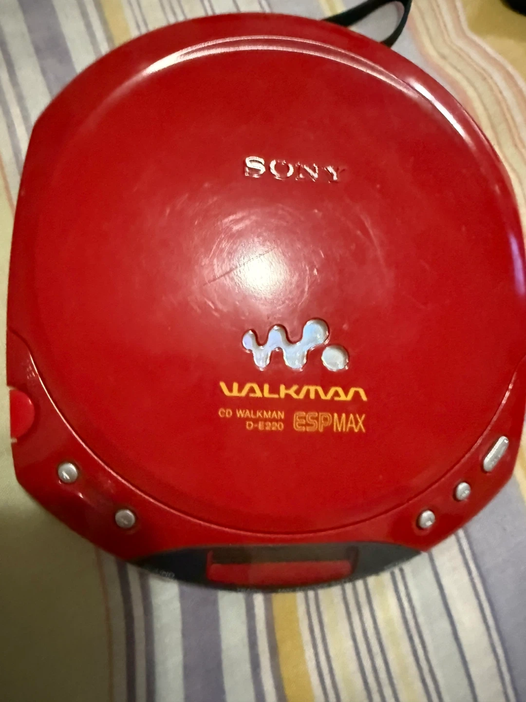 Selling a red Sony Walkman CD Walkman D-E220 ESPMAX. It's in used condition but still works great! Perfect for listening to your favorite CDs on the go