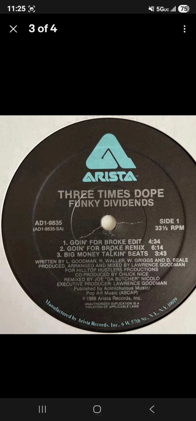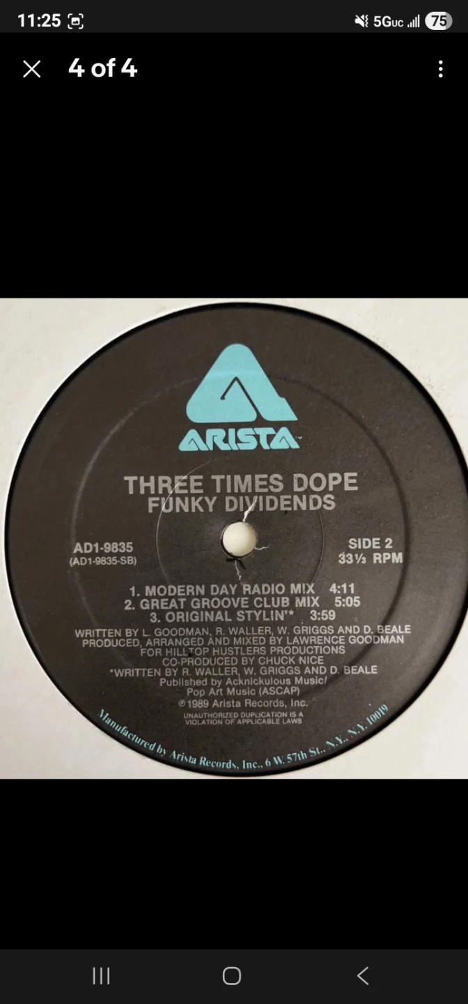 1 / 41 / 4Buy & SellThree Times Dope - Funky Dividends Vinyl RecordThree Times Dope - Funky Dividends Vinyl Record$140Selling a vinyl record of Three Times Dope's "Funky Dividends" album. A great addition for any hip-hop collector!ConditionLike newWHERE TO MEETCheck LocationView MapSELLERverifiedchrisMaspeth872 reviews0 chats·0 favorites·6 viewsSEND CHAT TO SELLERHi chris! I’m interested in your listing.Hi chris! I’m interested in your listing.Get the Karrot app to chatSign In to chat