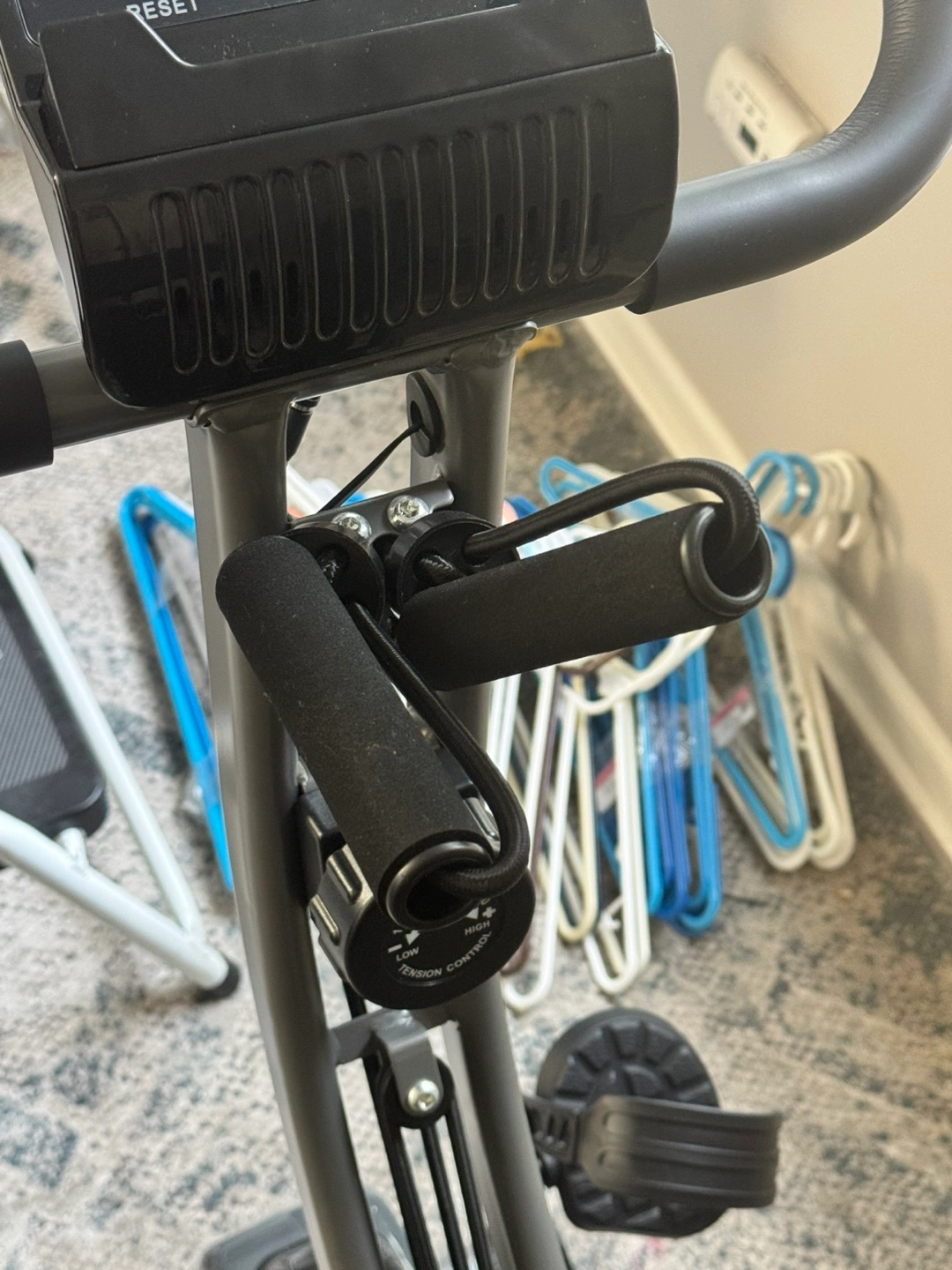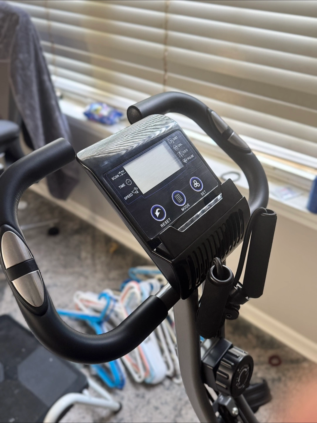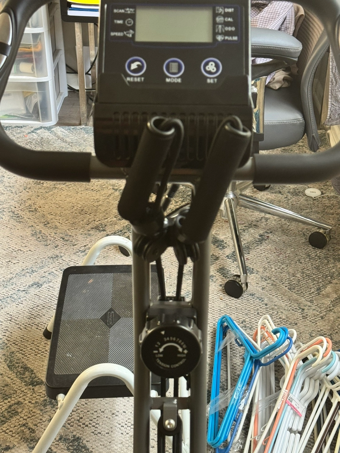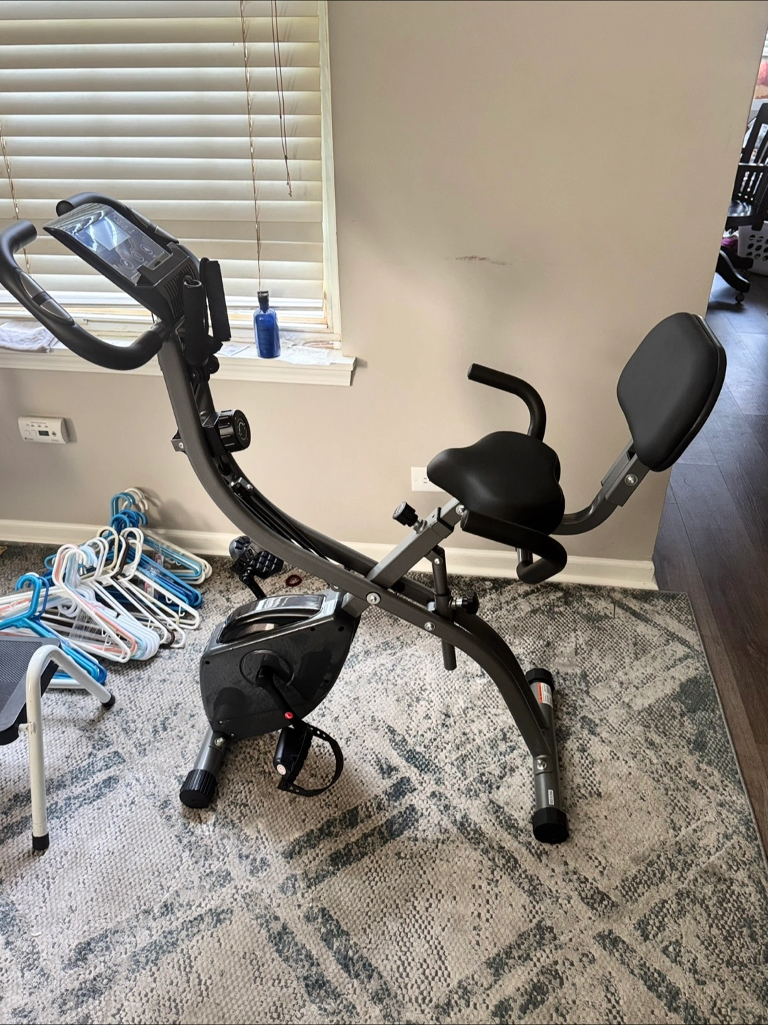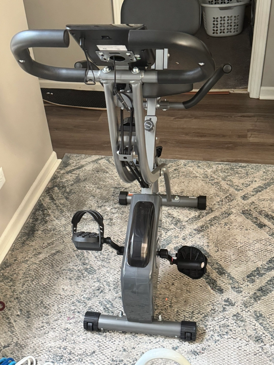 Selling an exercise bike with adjustable tension control for varying workout intensities. It features a display that shows scan, time, speed, distance, calories, ODO, and pulse. Great for home workouts! Brand new and fully assembled. Available for local pickup by Schaumburg and Barrington Road in Schaumburg IL 60194 or shipping to your doorstep for one low price with tracking included for free. Comes from a virus free, smoke free and pet free home.