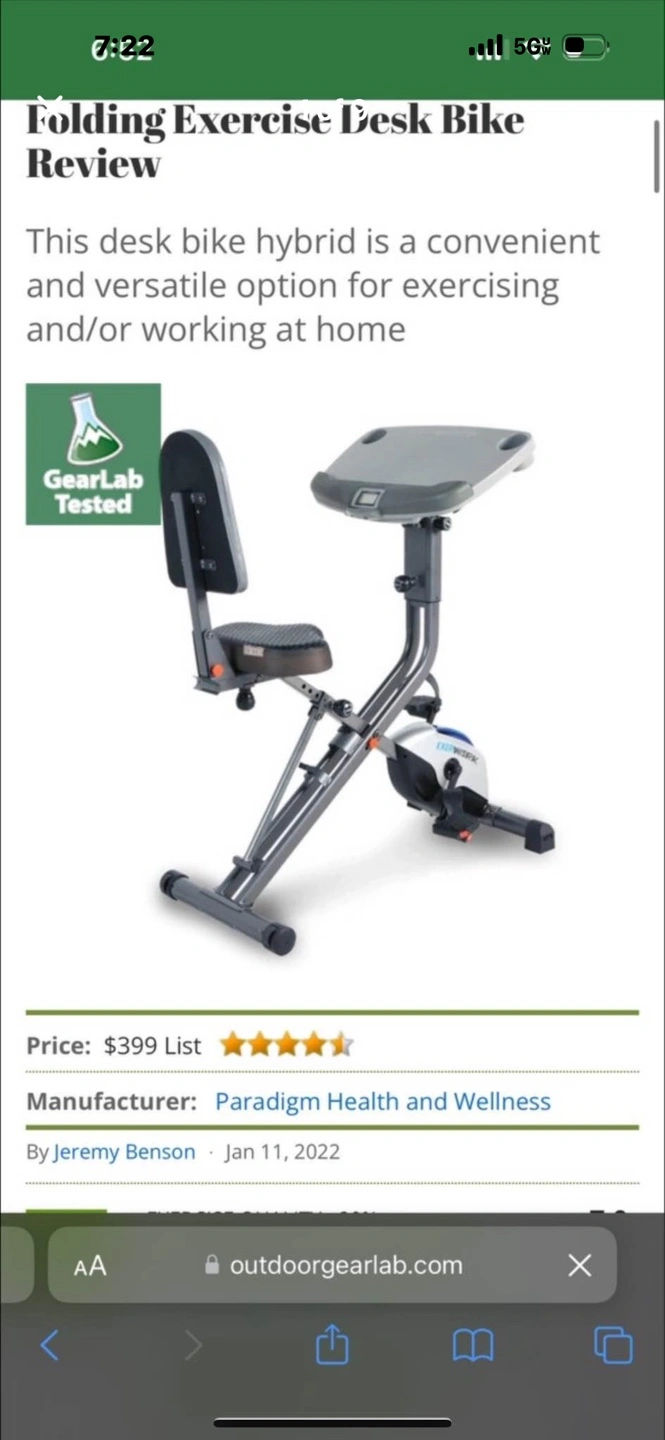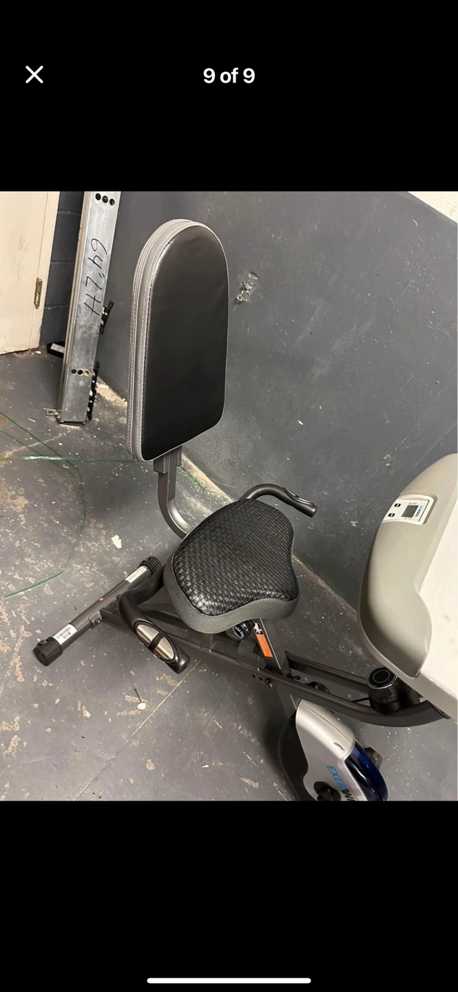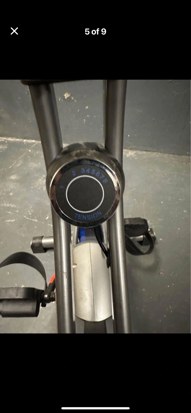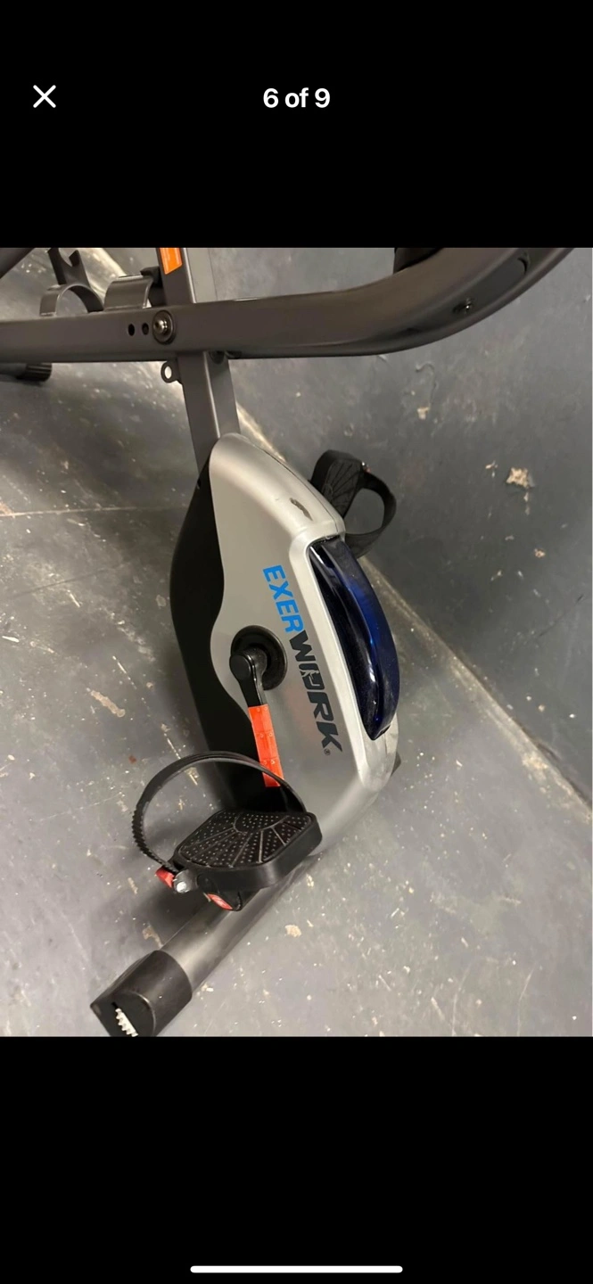 Show allFolding stationary bike with adjustable tension. Includes a desk and a comfortable padded seat.