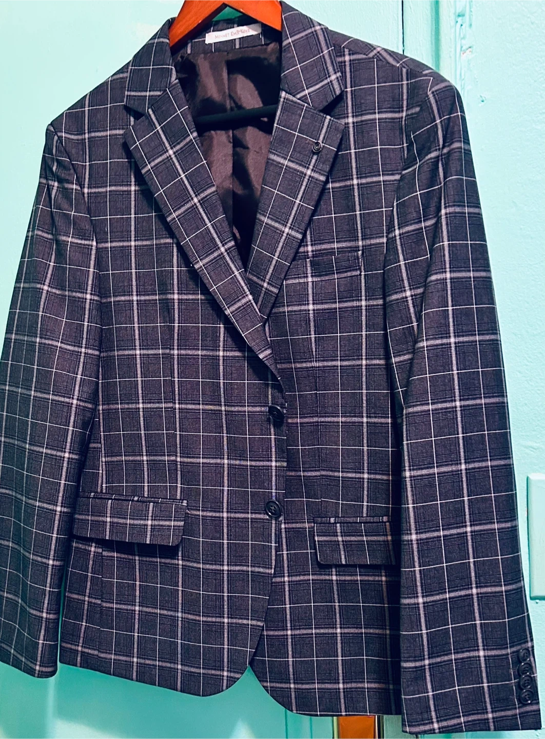 Selling a stylish men's blazer from Express! It features a classic plaid pattern and a modern fit. Perfect for dressing up or adding a touch of sophistication to your casual look. The blazer is in great condition and ready for a new home