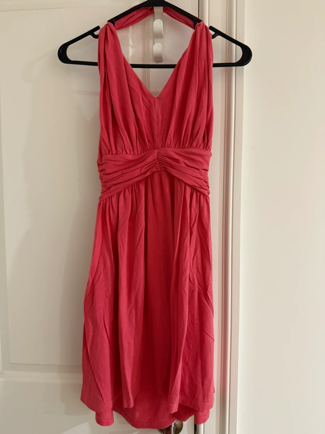 95Here's a cute pink halter dress! It's in great condition and ready for a new home. Perfect for summer outings or a casual day out